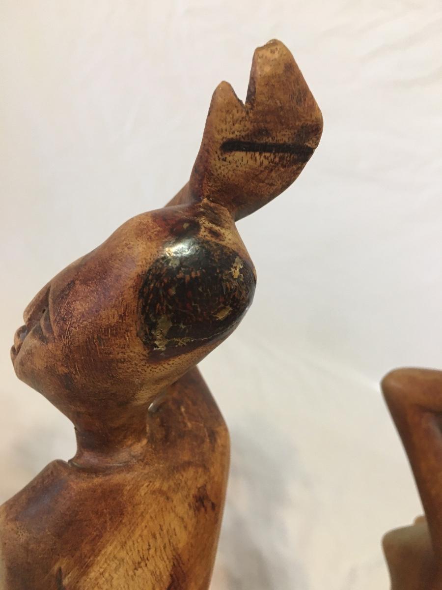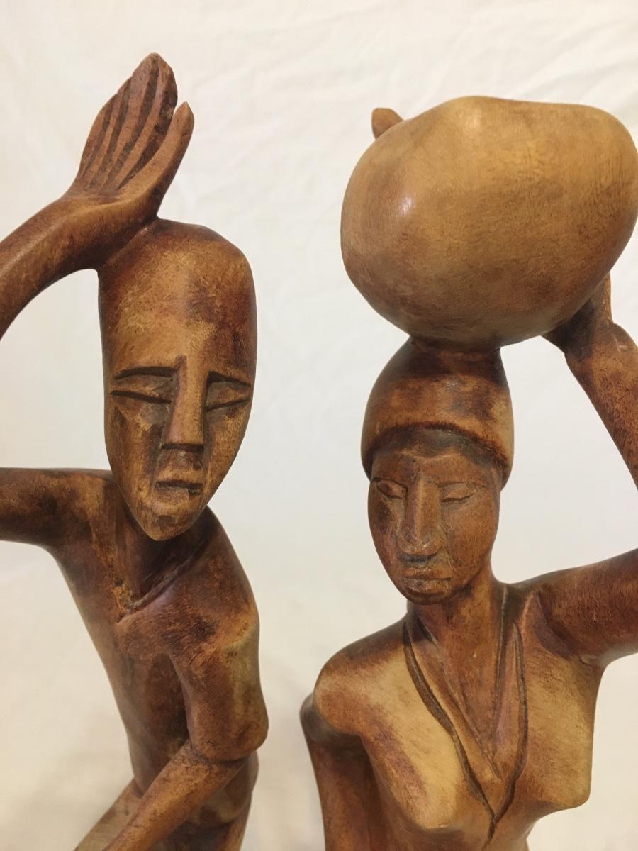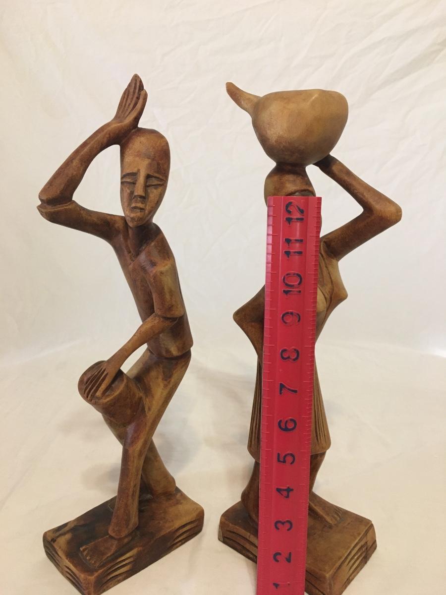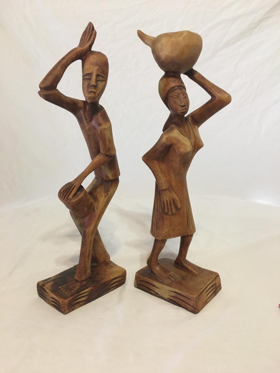Vintage Figure African Hand Carved Wood Tribal Figurine Statues 16 inches Lot Of 2