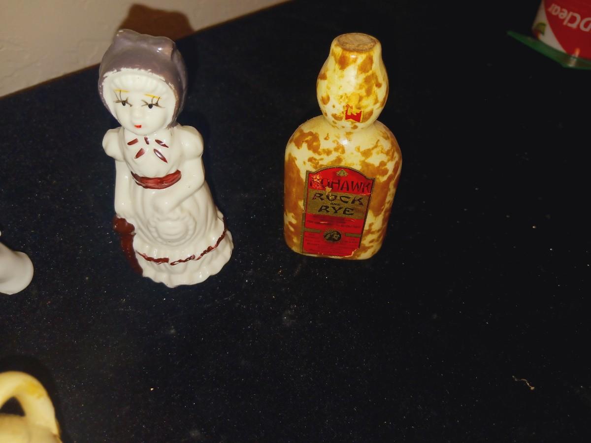VINTAGE FIGURINES AND SOME OLD SEALED BOTTLES