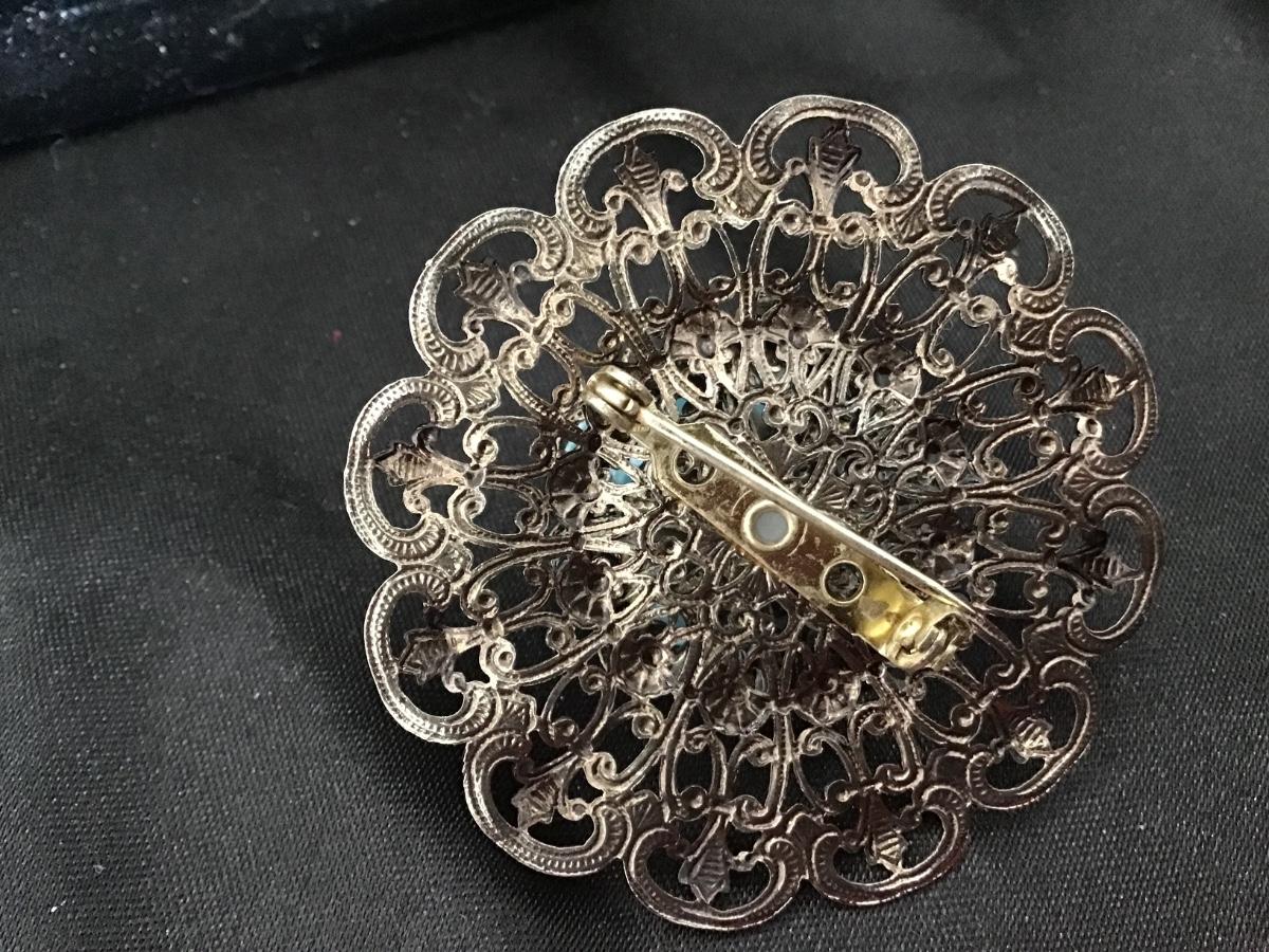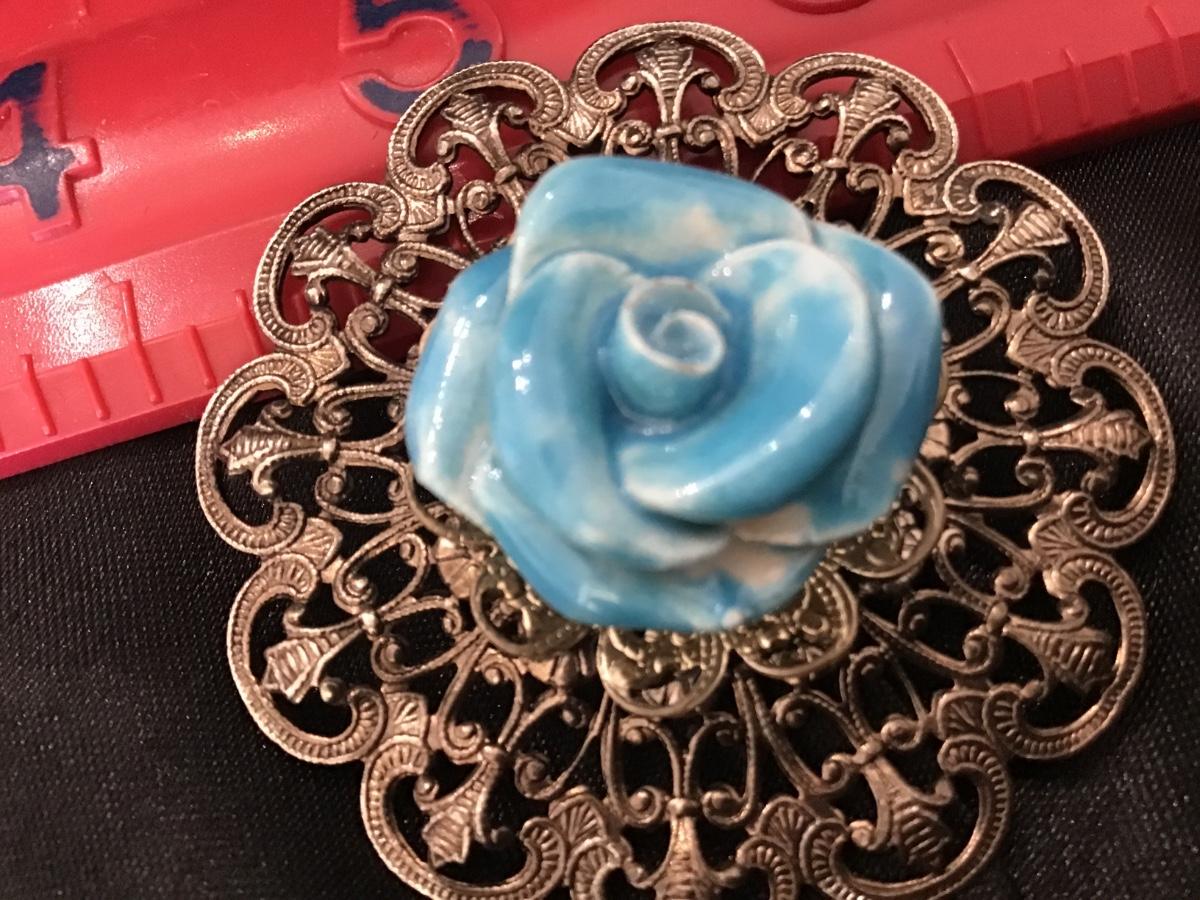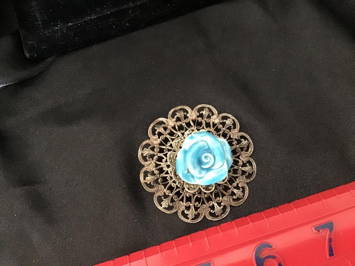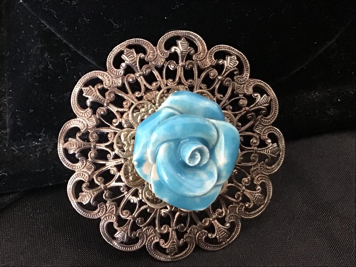 Vintage Filagree Blue Rose Brooch