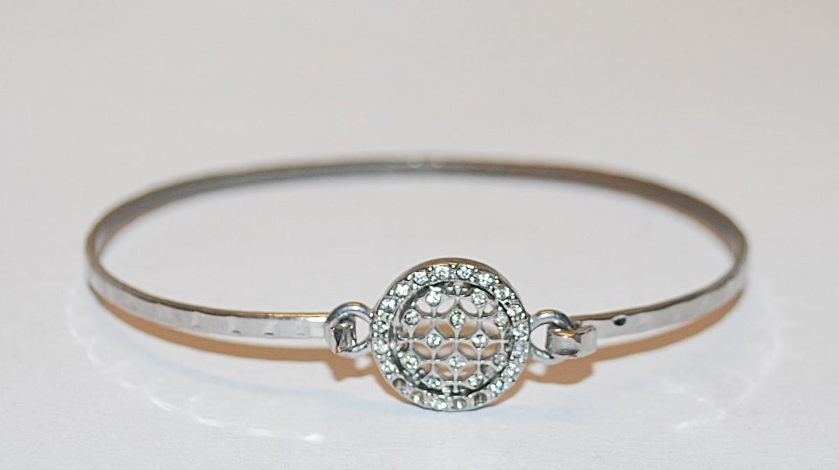 VINTAGE Filagree-Style Circle BANGLE BRACELET (2¼" Opening) with Curved Hook Closure