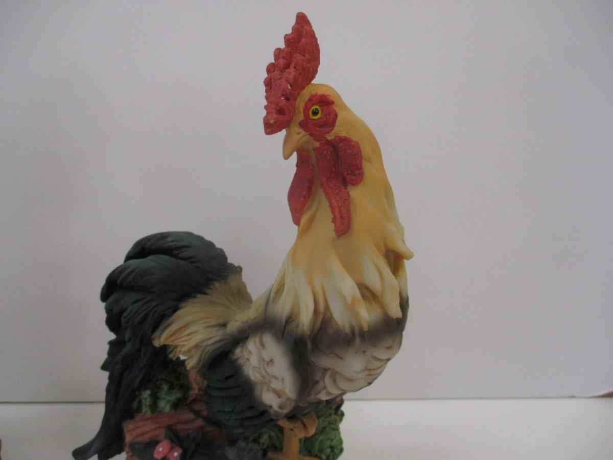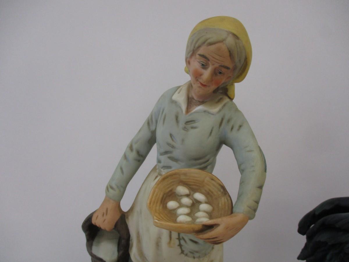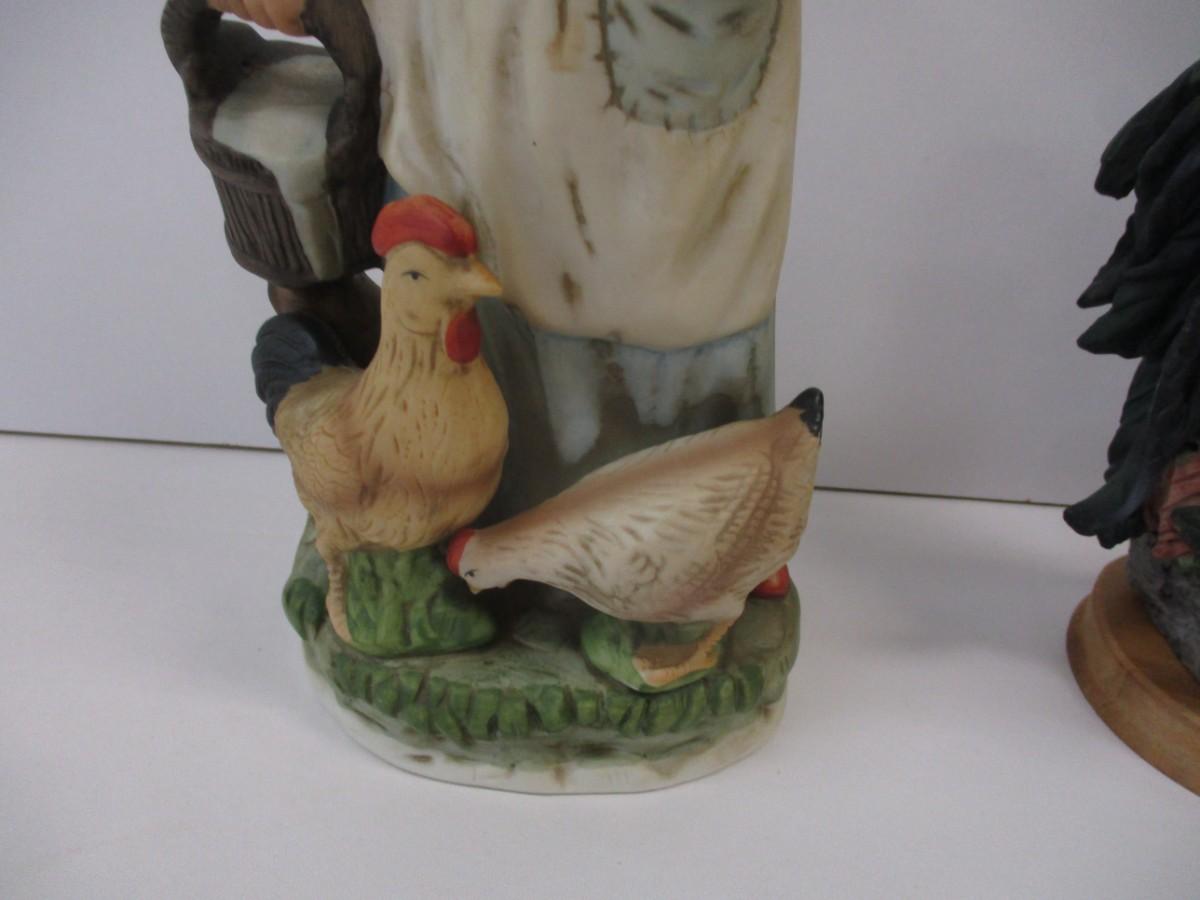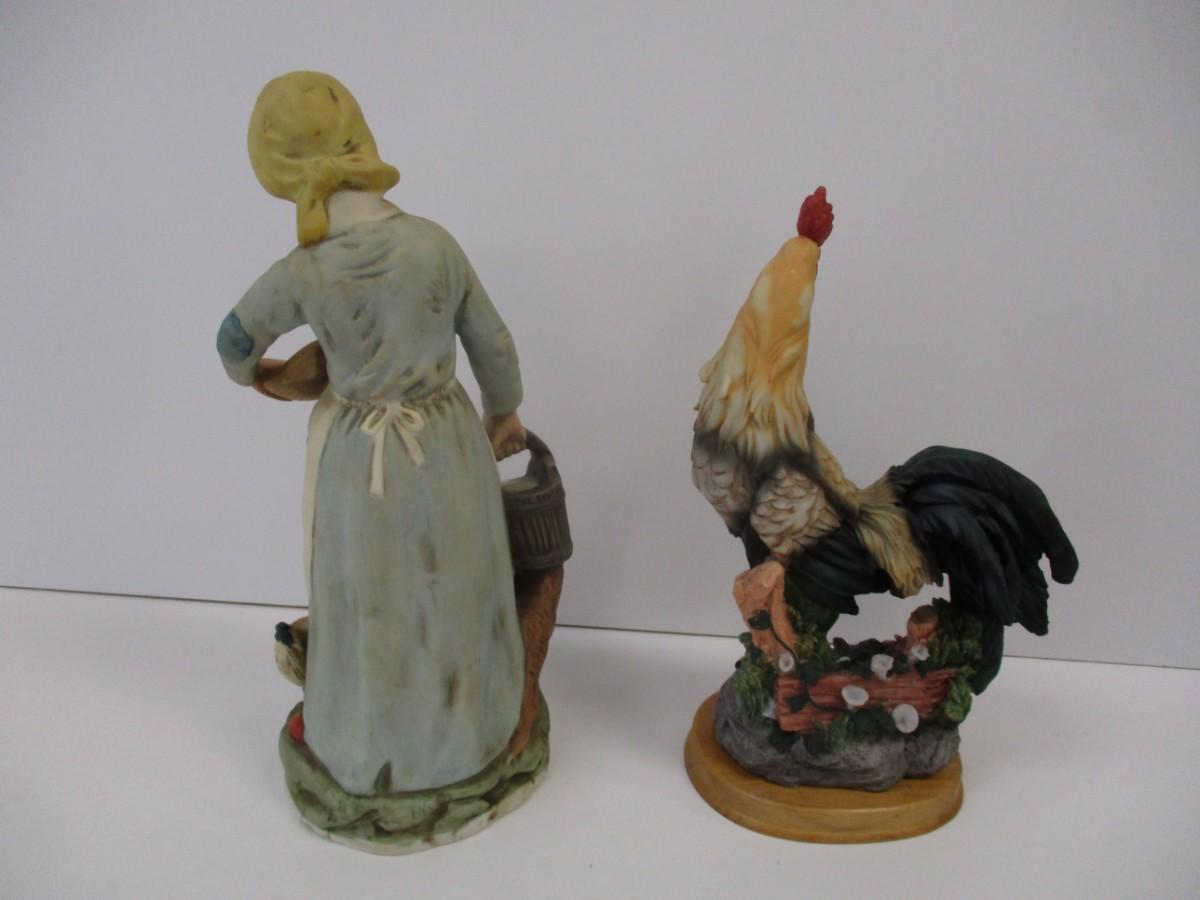Vintage Fine Porcelain Bisque Farmhouse Woman Gathering Eggs & "Proud Rooster" 2001 Figure
