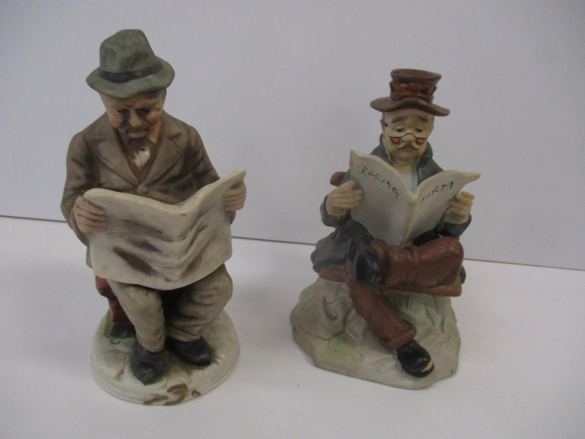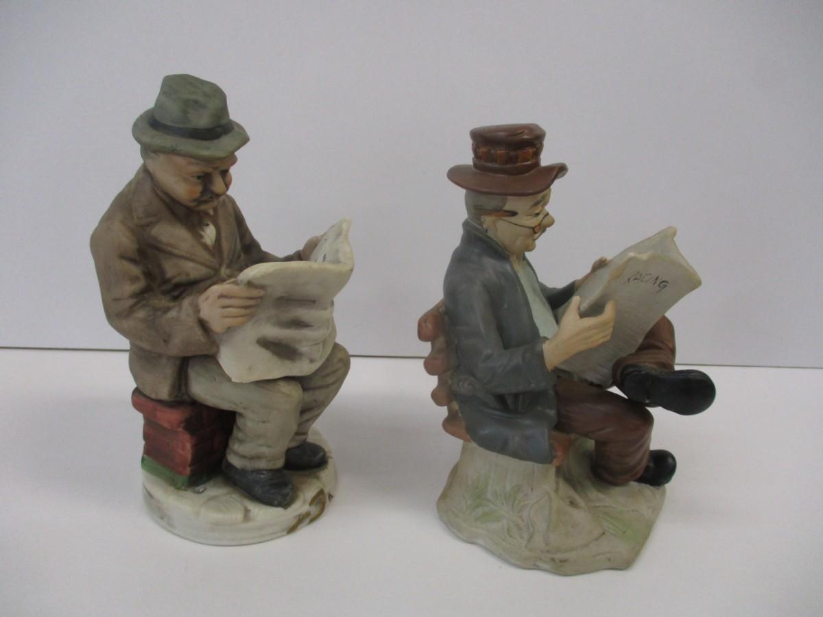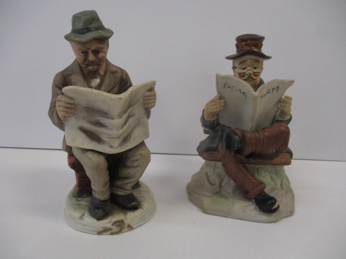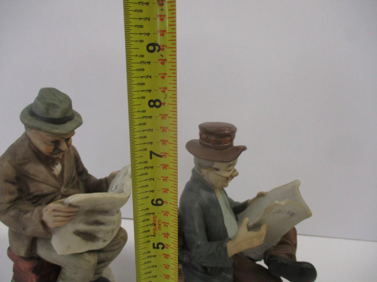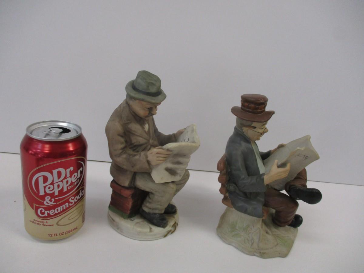 Vintage Fine Porcelain Bisque Men Reading The Paper Figurines