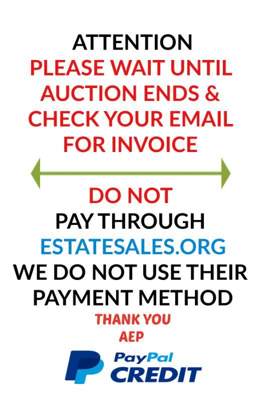 Please DO NOT Pay YOUR Invoice at end of Auction.
