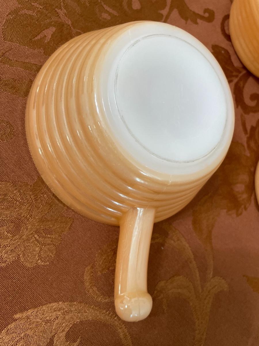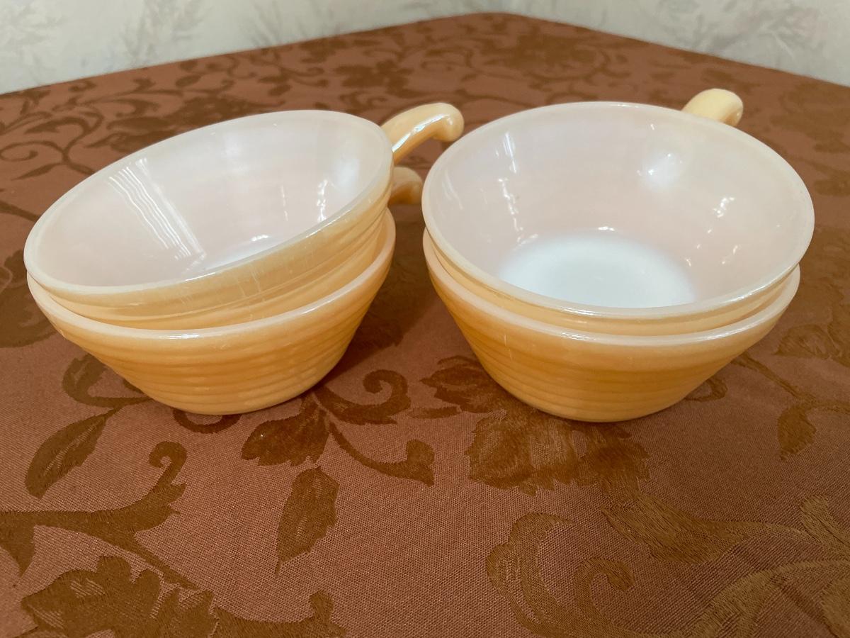Set of 4 vintage Fire King orange bowls with handle