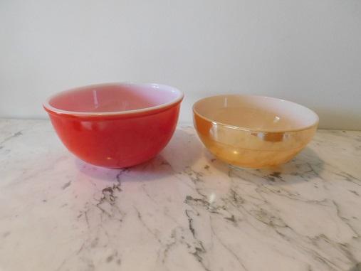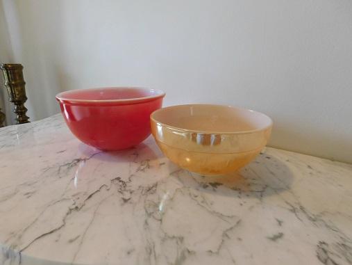 Vintage Fire King Bowls 8" and 6" some fading color on luster bowl