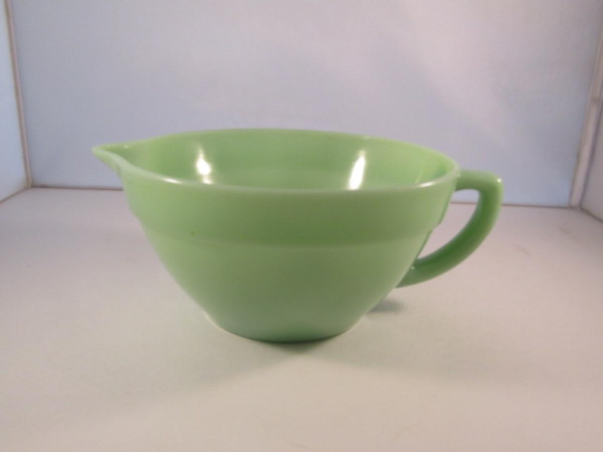 Vintage Fire King Jadeite Batter Bowl with Spout- Approx 7 1/2" in Diameter, 4" Tall