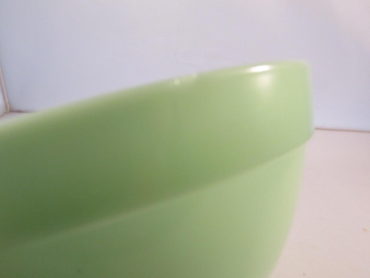 Vintage Fire King Jadeite Batter Bowl with Spout- Approx 7 1/2" in Diameter, 4" Tall. Please see all pictures- small chip on rim.