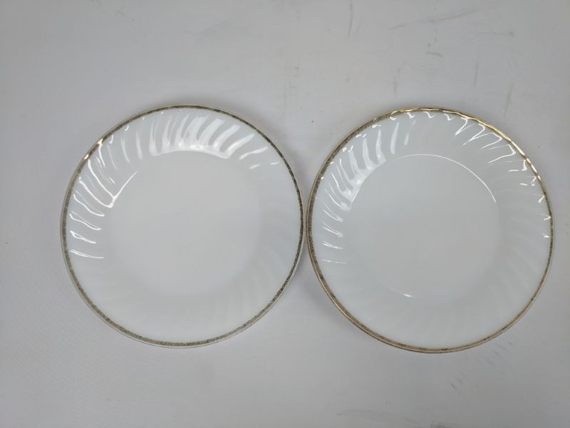 Vintage Fire King Milk Plates, Set of 2, Gold Rim