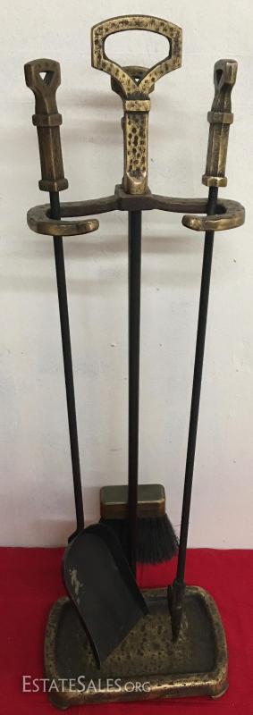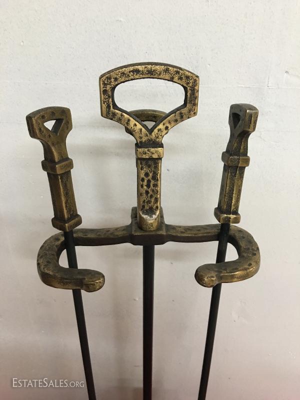Hammered brass fire place tool set 3 piece. Used in good working condition.