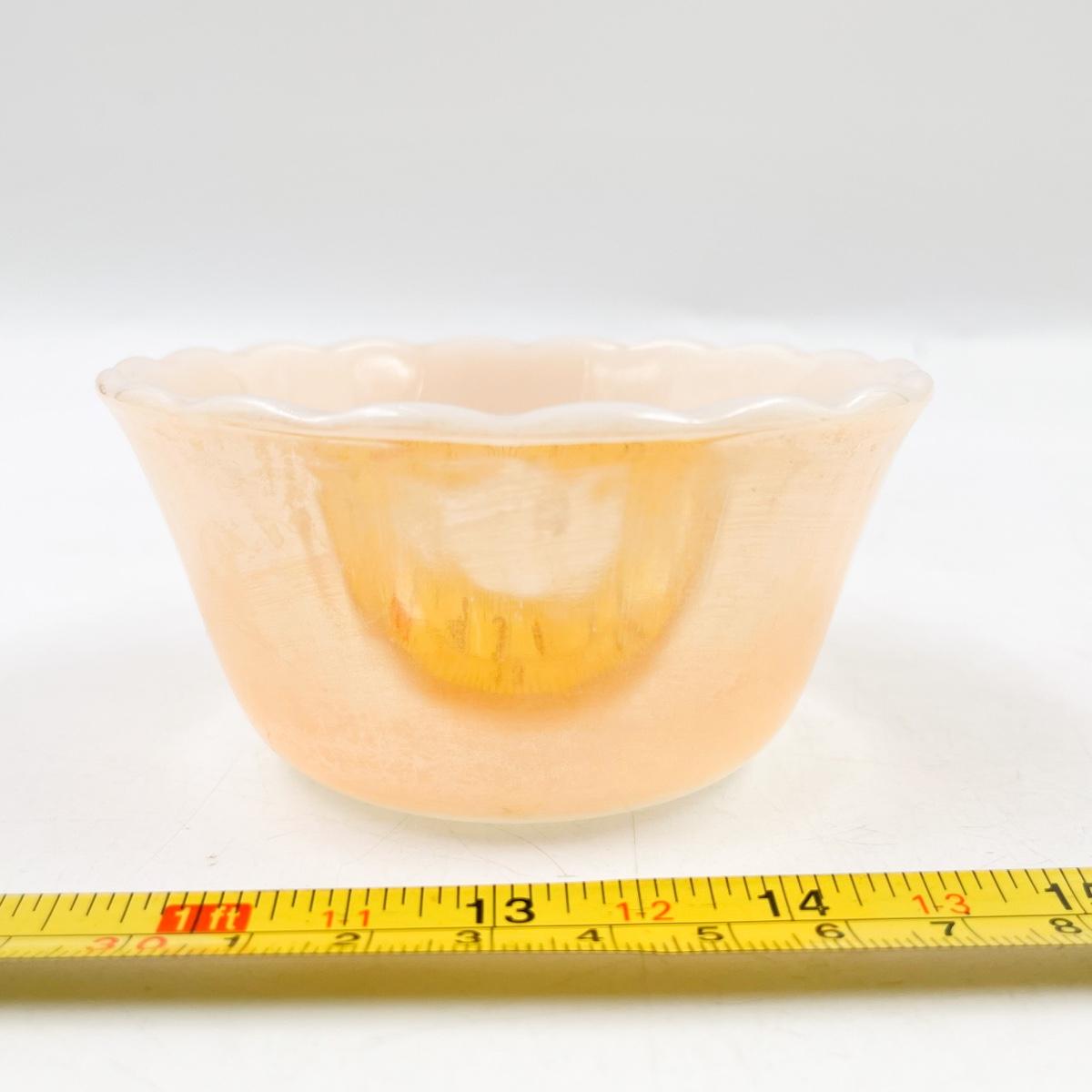 VINTAGE FIRE-KING PEACH LUSTER CUSTARD CUP W/ SCALLOPED RIM