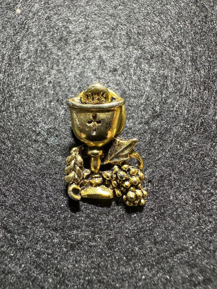 Vintage First Communion Lapel Pin with Chalice Design Gold tone Camco