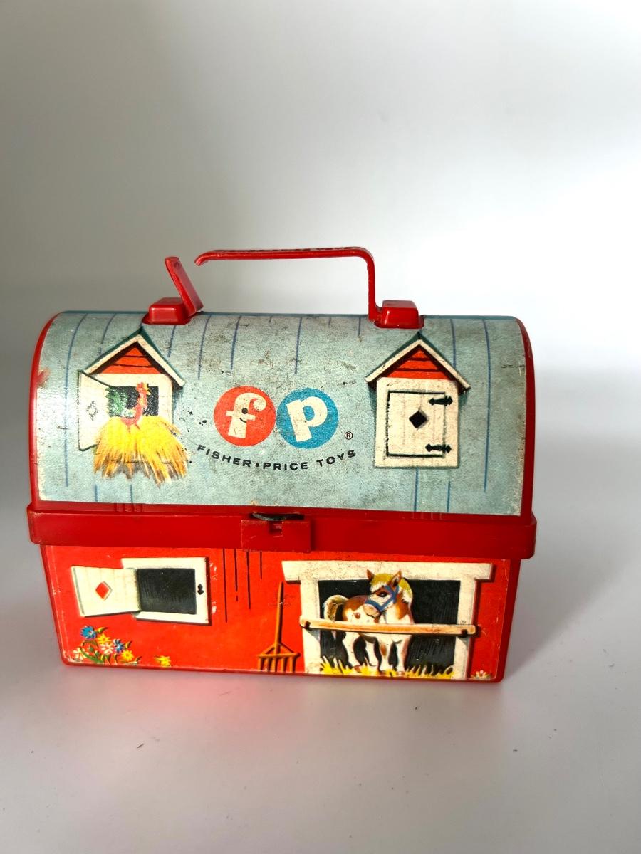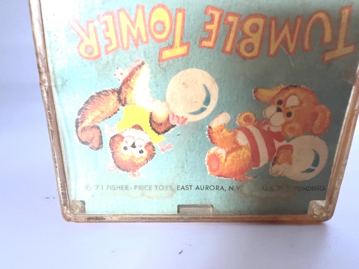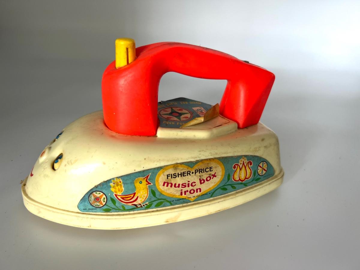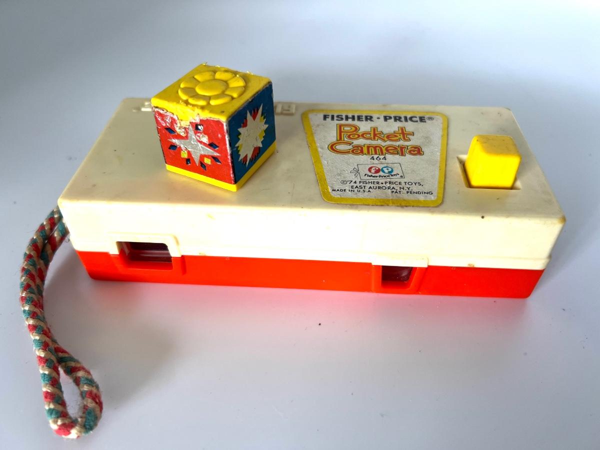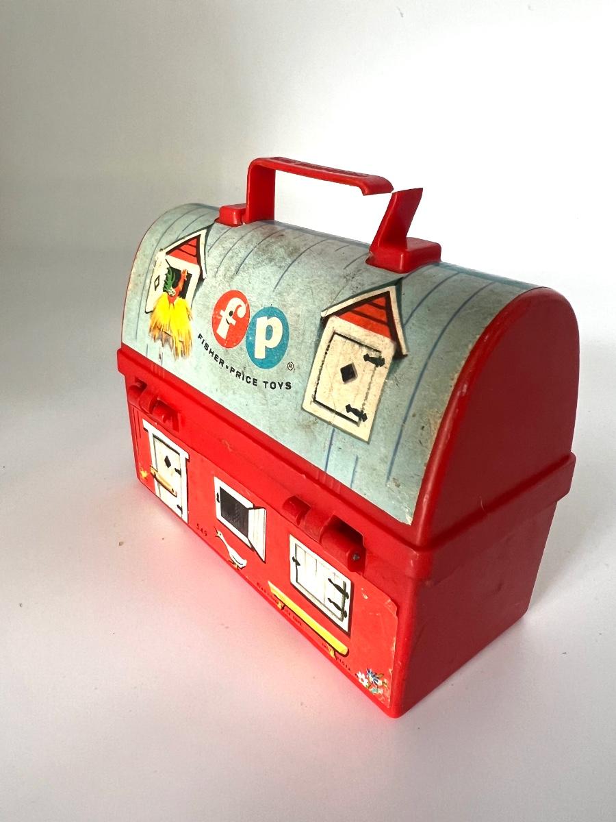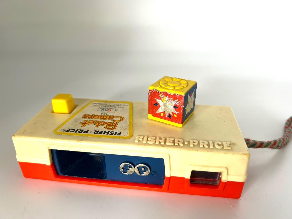 Doesn’t this take you back!! This lot covers toys from 60s, 70s, and 80s! In the lot you get one red apple, 1972, one recorder 1980, one hickory Dickory dock wind toy that works 1964, pocket camera, 1974 tumble tower, 1971, little snoopy wooden toy dog, 1968 green and yellow fish, 1977, Farm Box, does have a broken handle at the top 1962 and lastly Fisher-Price iron no date noted. these toys were all loved and played with. Please see pictures for details.
