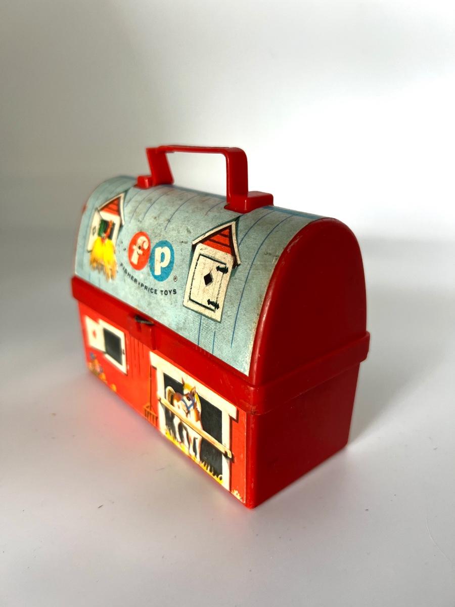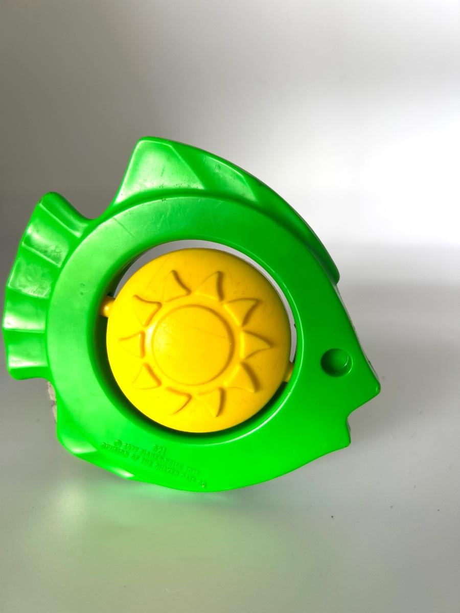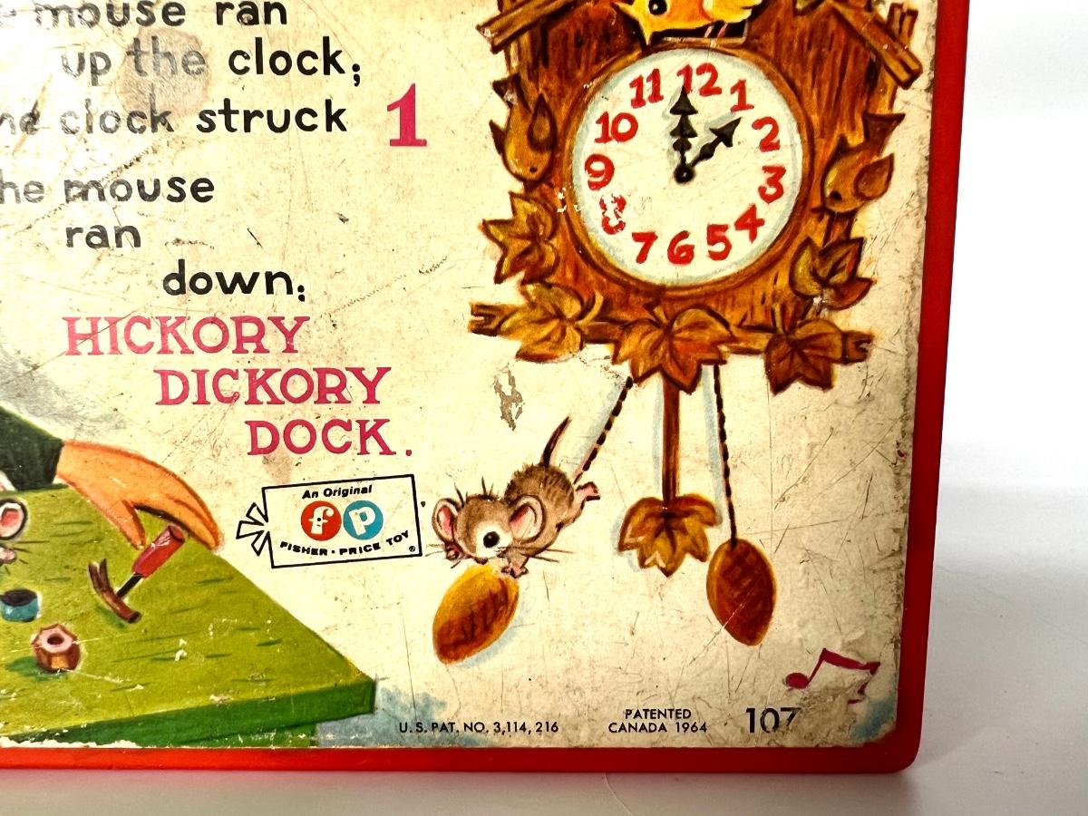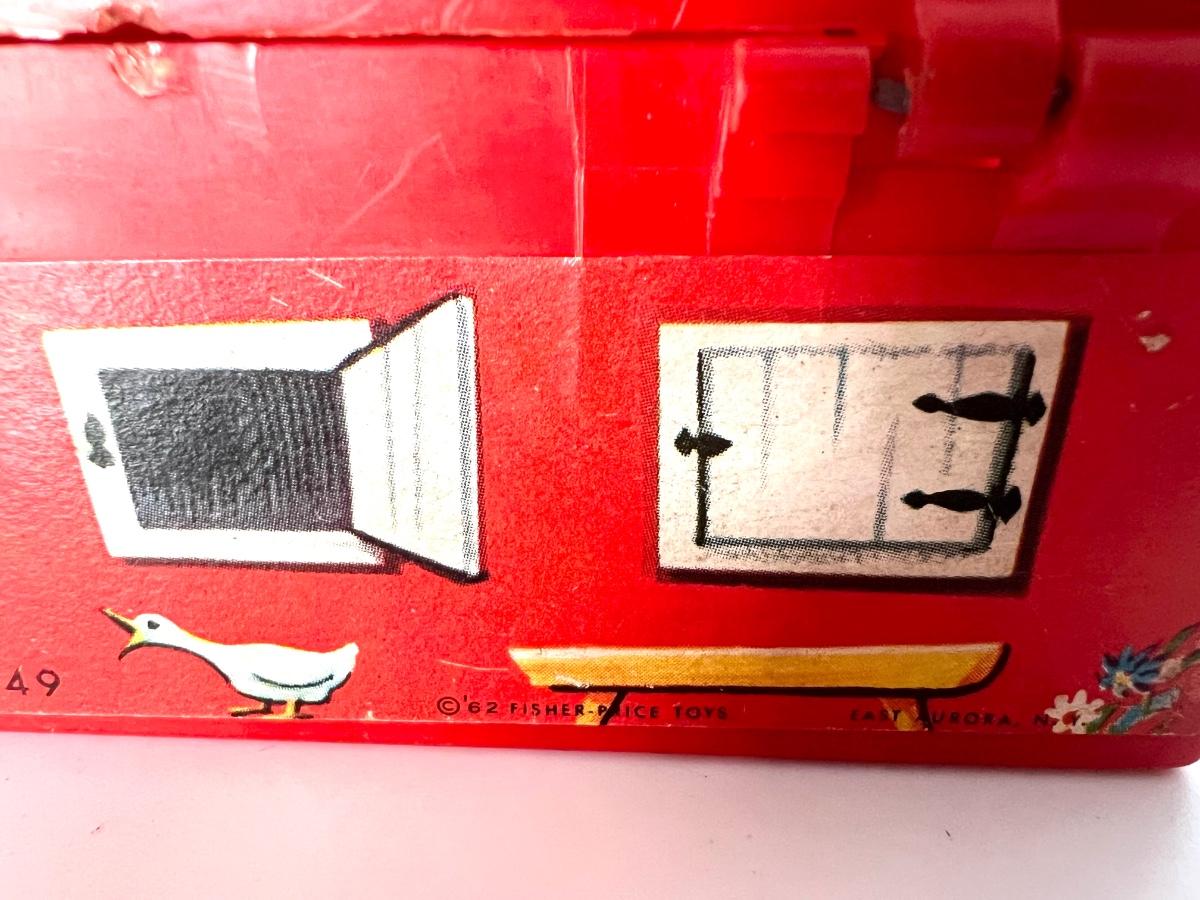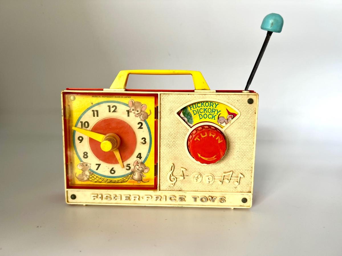 Doesn’t this take you back!! This lot covers toys from 60s, 70s, and 80s! In the lot you get one red apple, 1972, one recorder 1980, one hickory Dickory dock wind toy that works 1964, pocket camera, 1974 tumble tower, 1971, little snoopy wooden toy dog, 1968 green and yellow fish, 1977, Farm Box, does have a broken handle at the top 1962 and lastly Fisher-Price iron no date noted. these toys were all loved and played with. Please see pictures for details.
