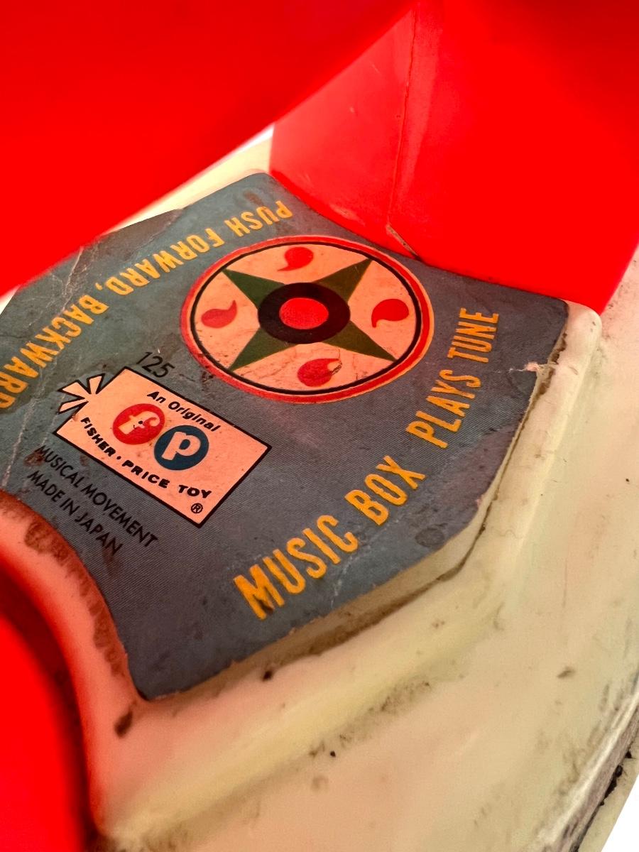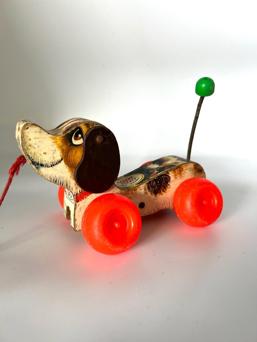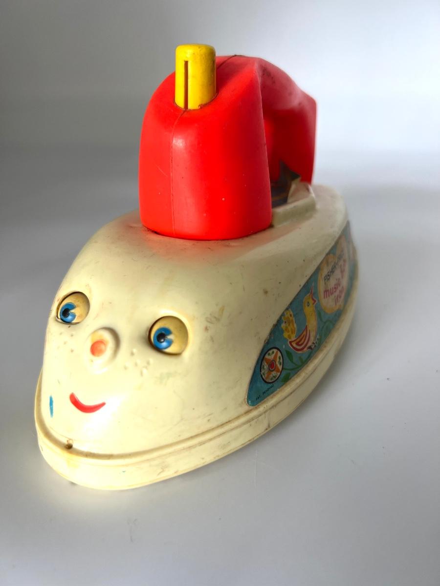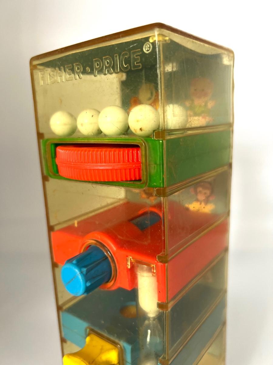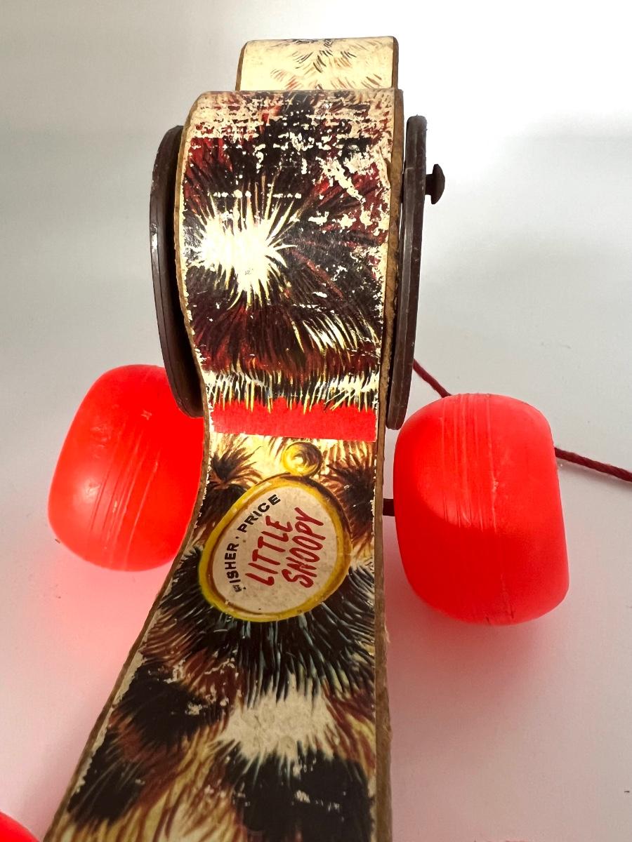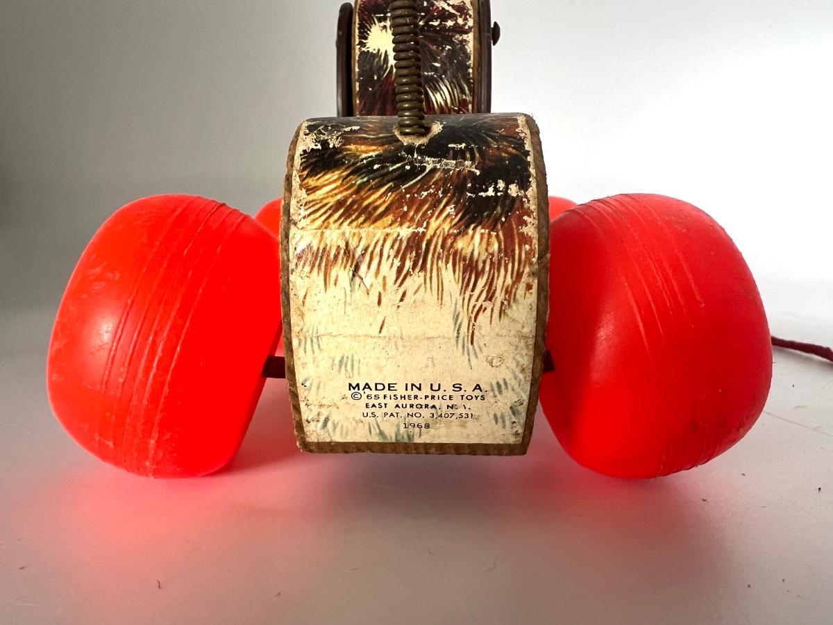 Doesn’t this take you back!! This lot covers toys from 60s, 70s, and 80s! In the lot you get one red apple, 1972, one recorder 1980, one hickory Dickory dock wind toy that works 1964, pocket camera, 1974 tumble tower, 1971, little snoopy wooden toy dog, 1968 green and yellow fish, 1977, Farm Box, does have a broken handle at the top 1962 and lastly Fisher-Price iron no date noted. these toys were all loved and played with. Please see pictures for details.