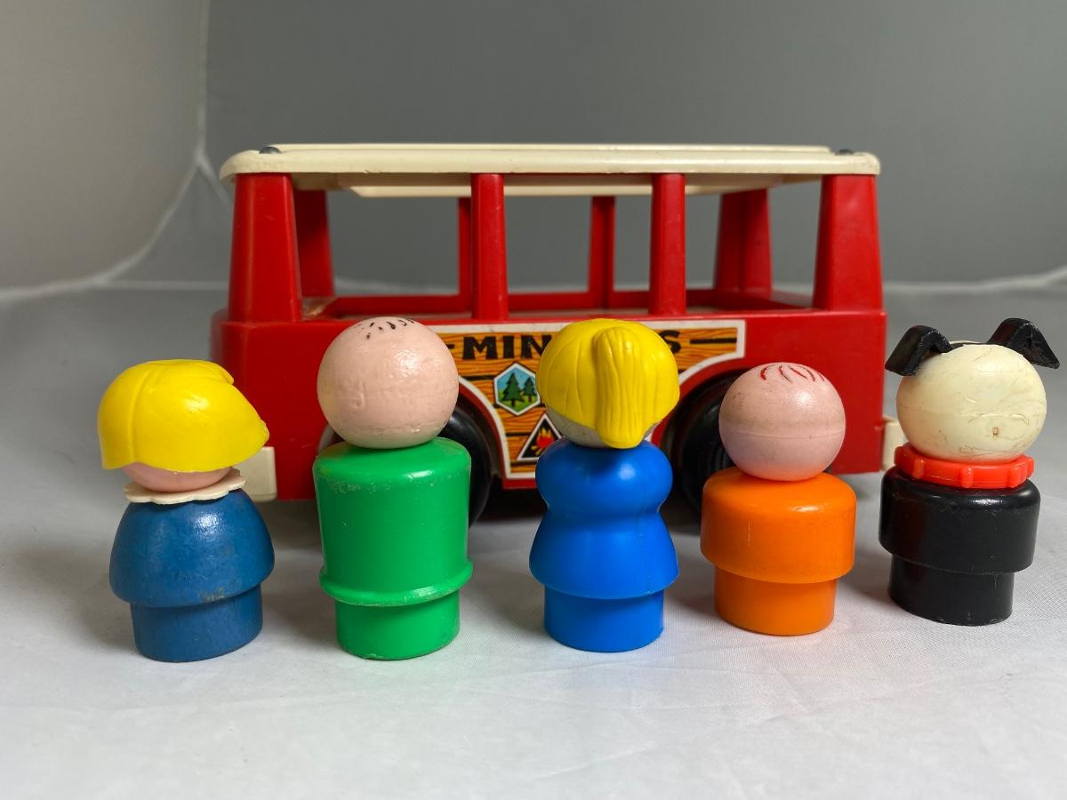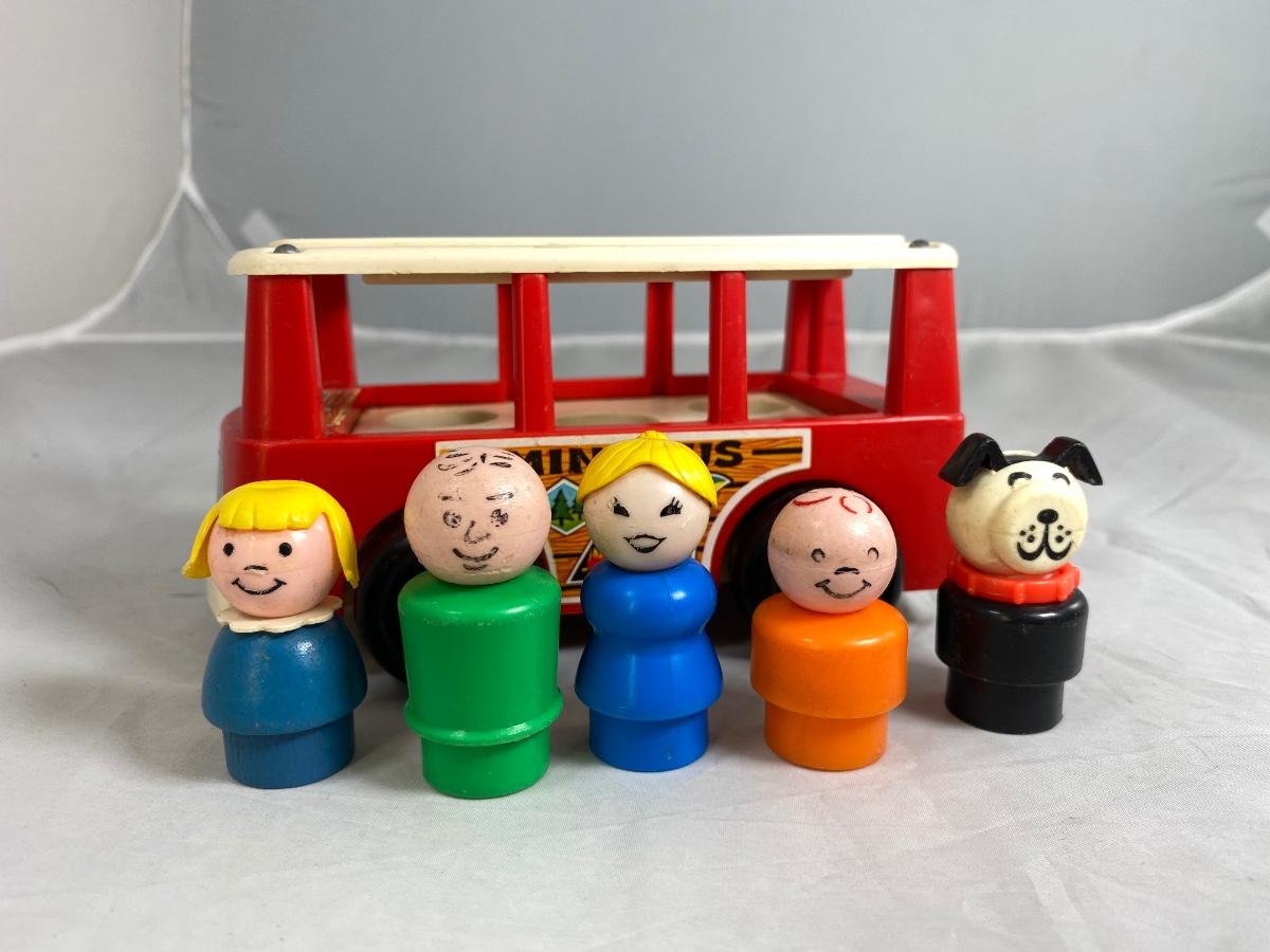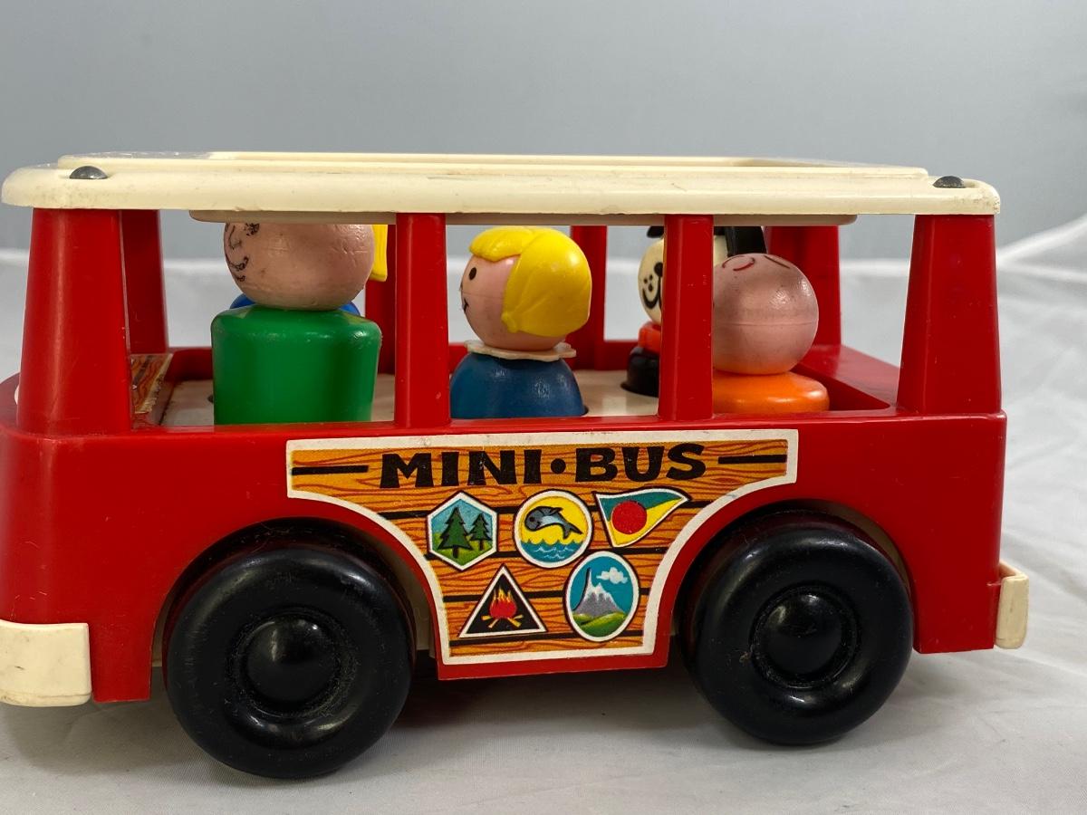 Vintage Fisher Price Little People Mini Bus with Family & Dog