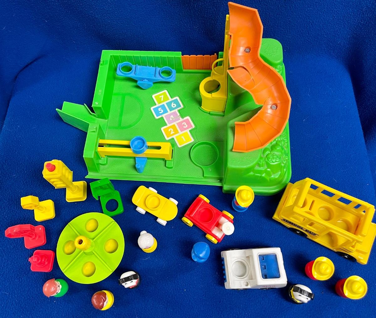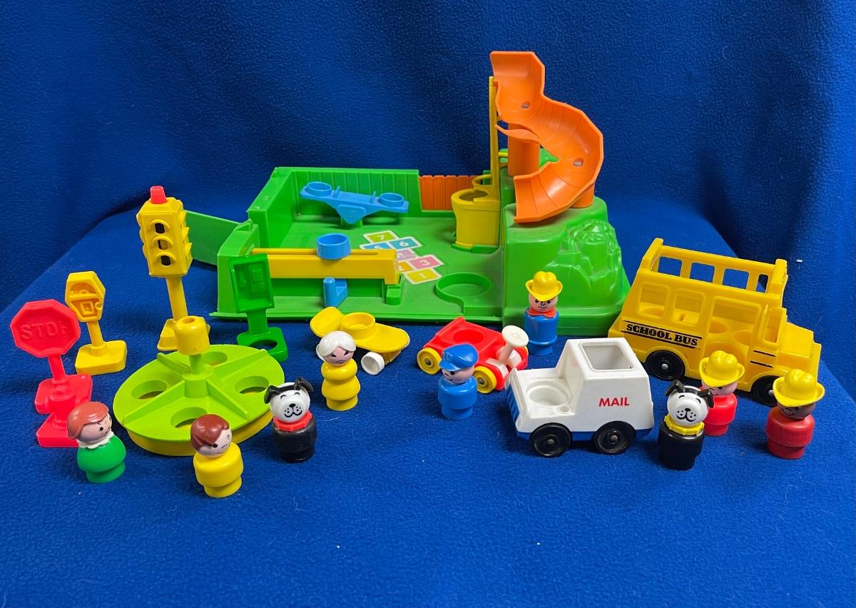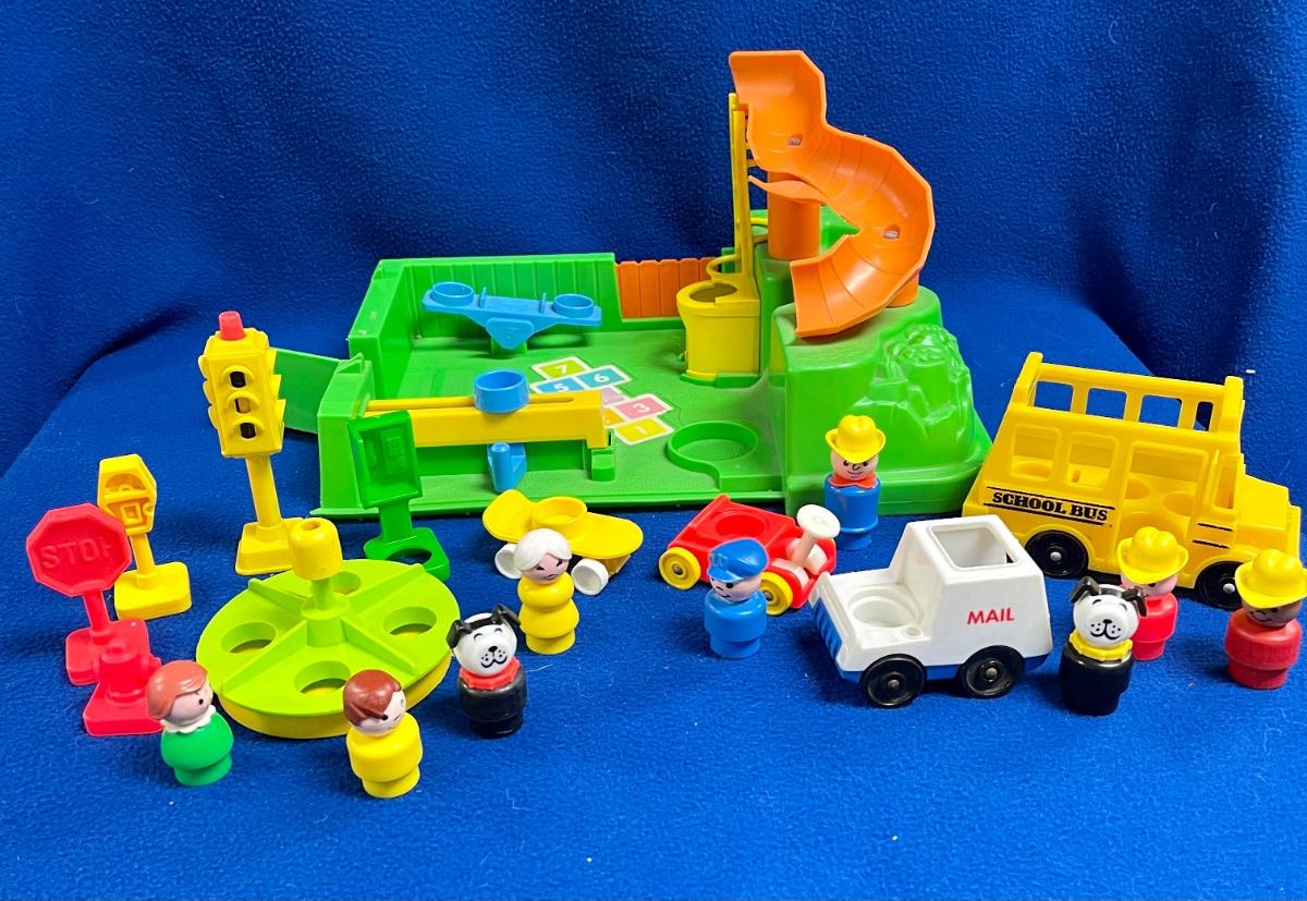 Vintage Fisher Price Little People lot. Includes the playground that was originally part of the Little People school. Includes all the pieces photo'd. Great addition to any Little People playsets.