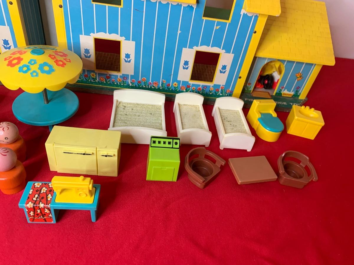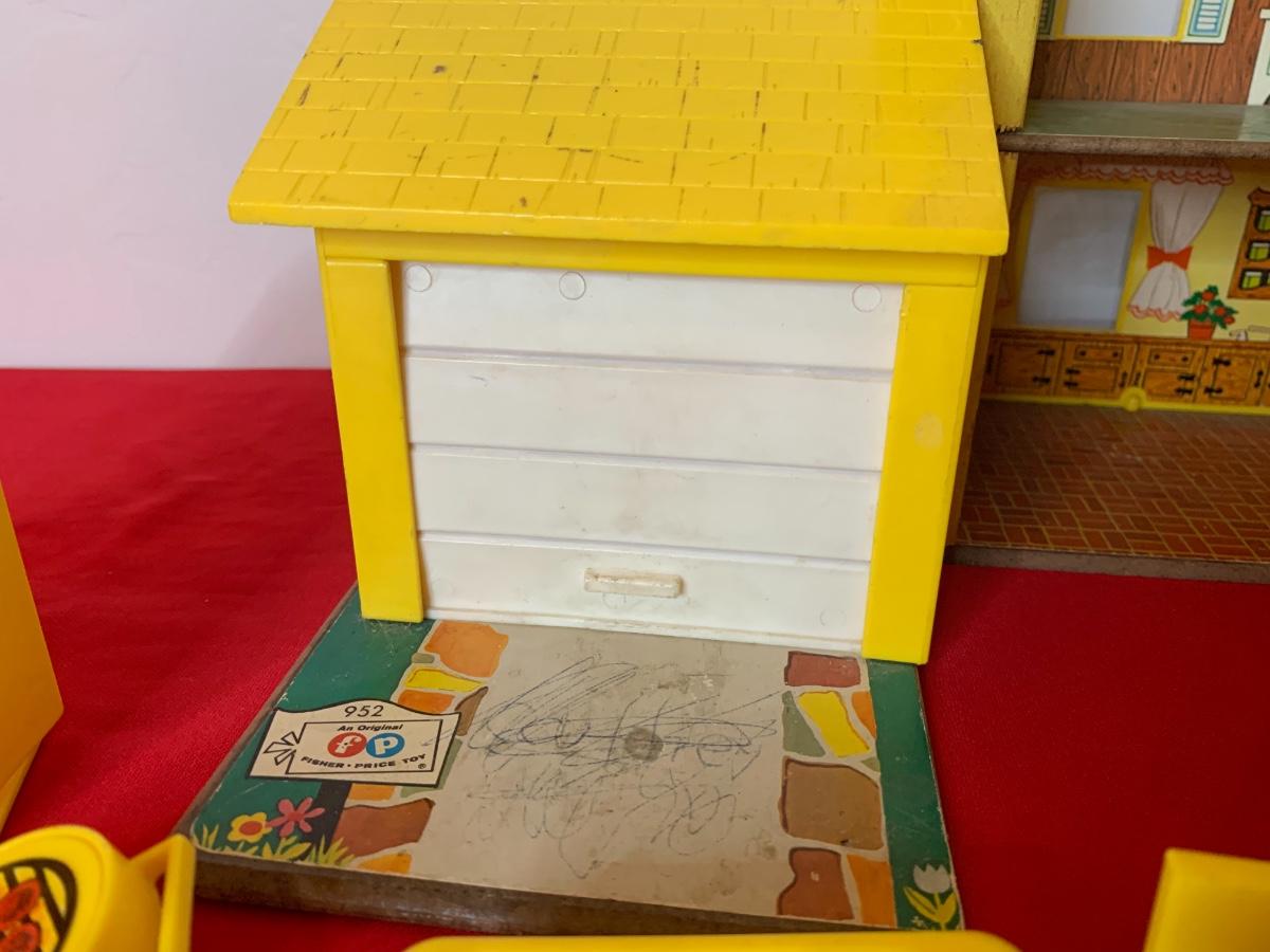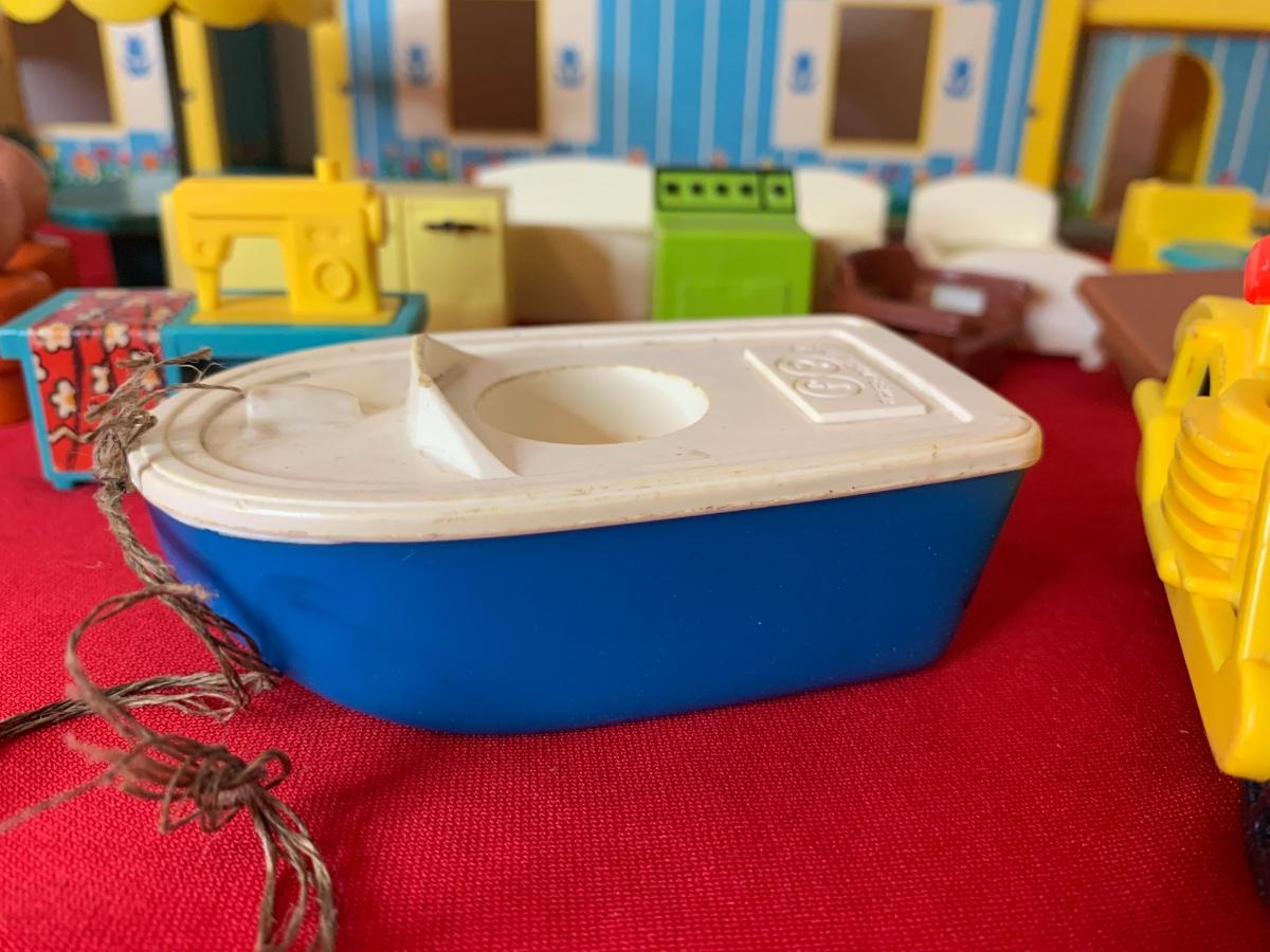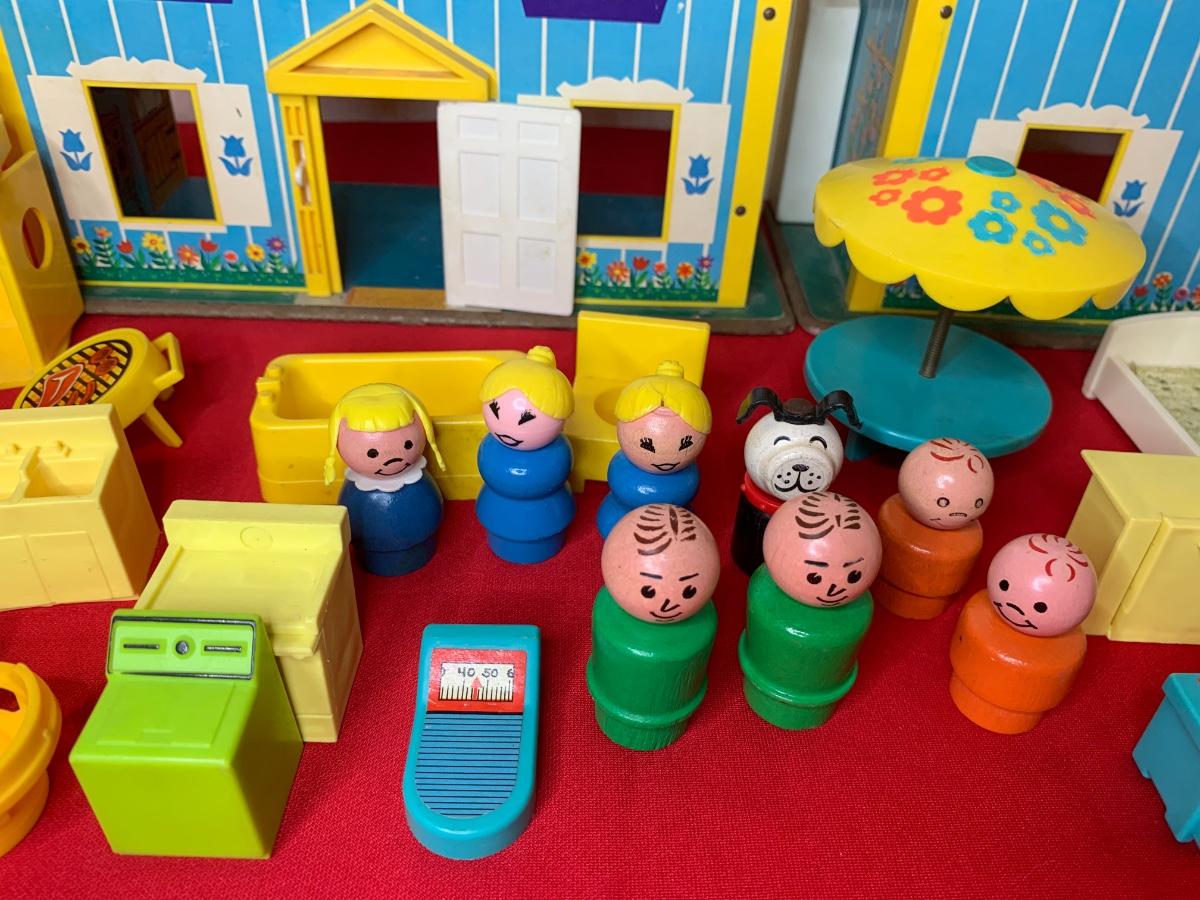 Includes the house 952 with attached single car garage, various family members, furniture and stairs. Garage toys including car, motorcycle and boat Good used condition.