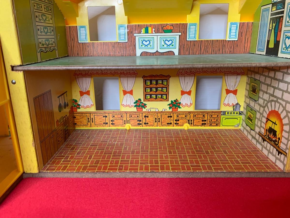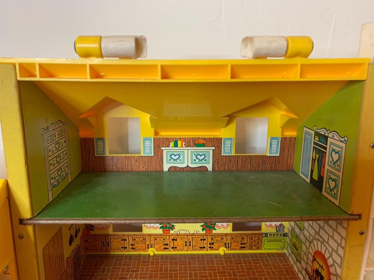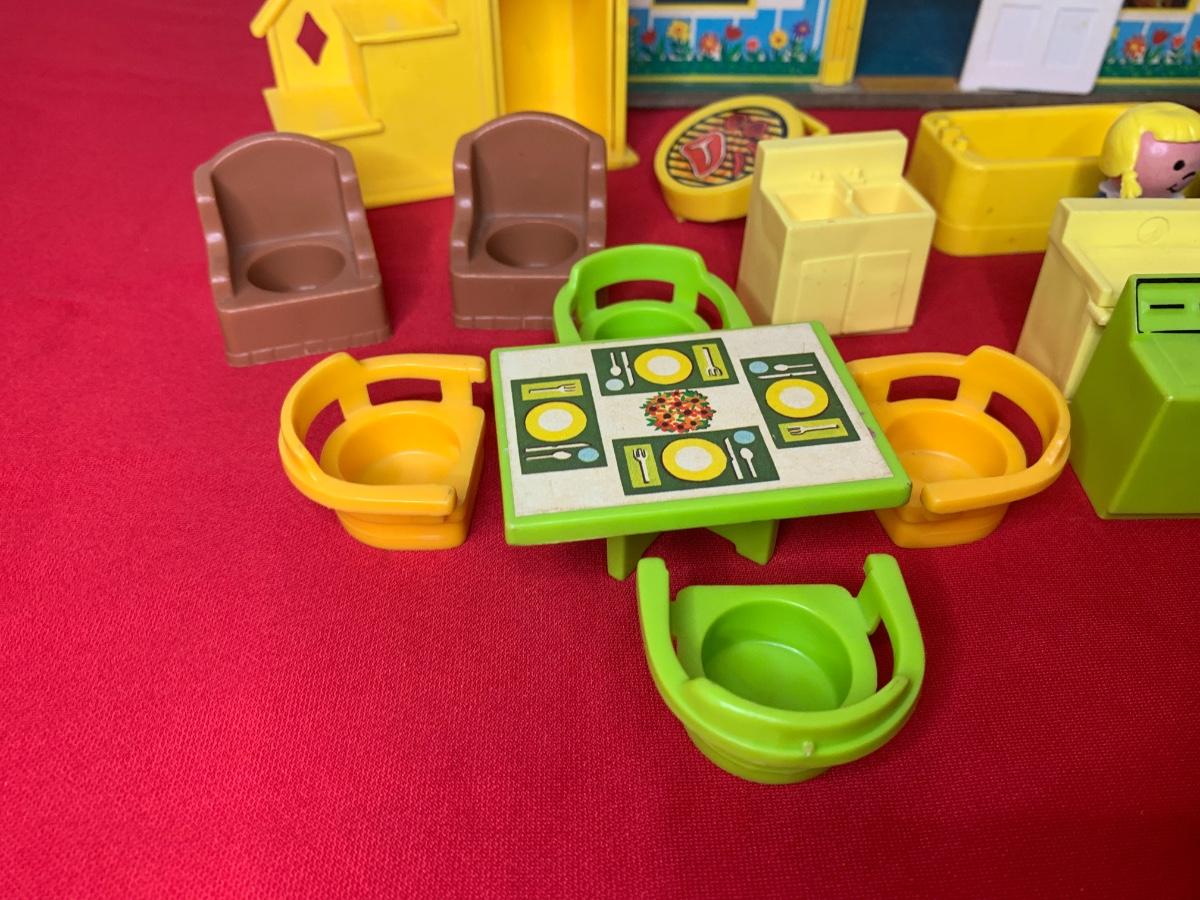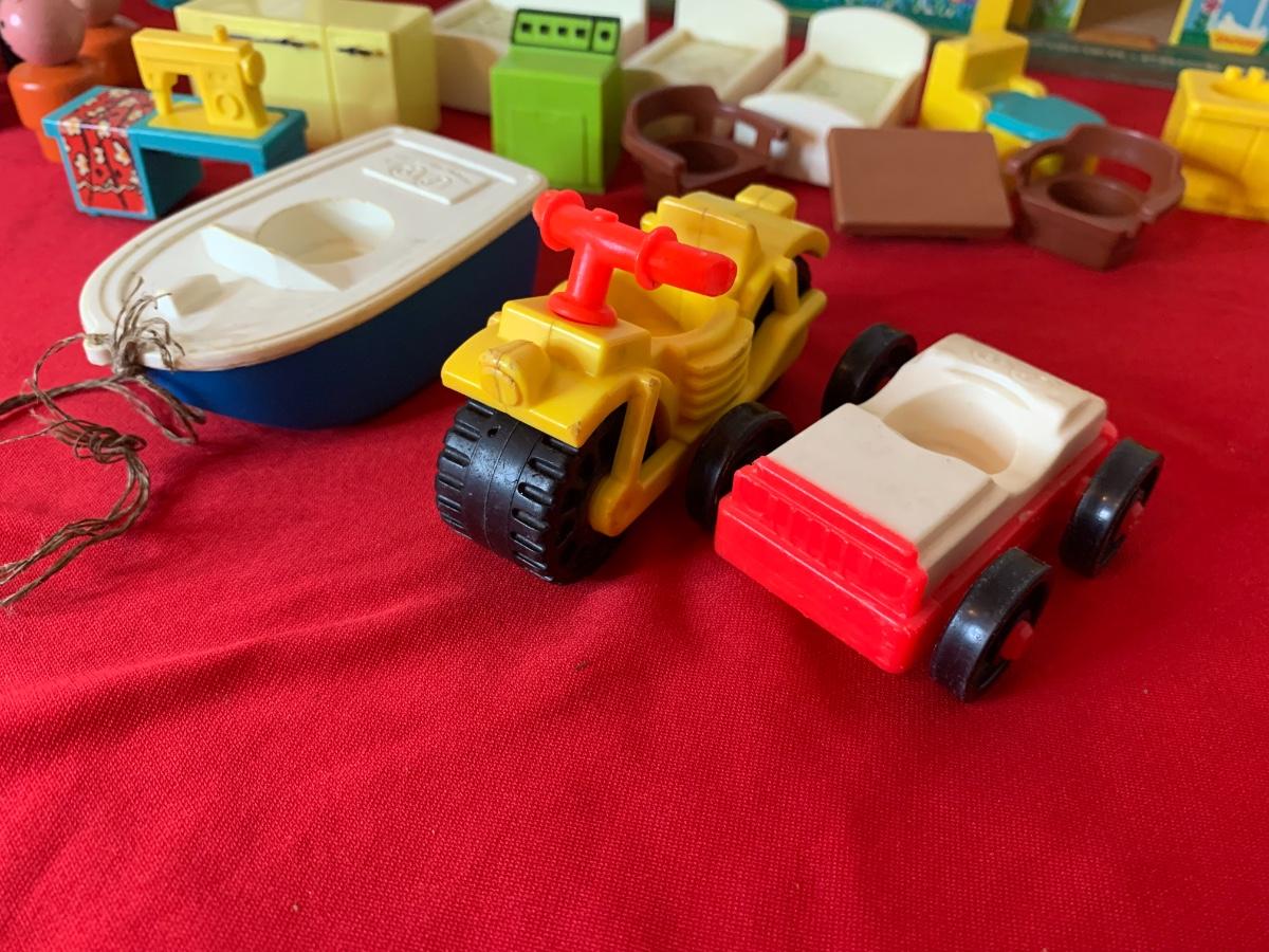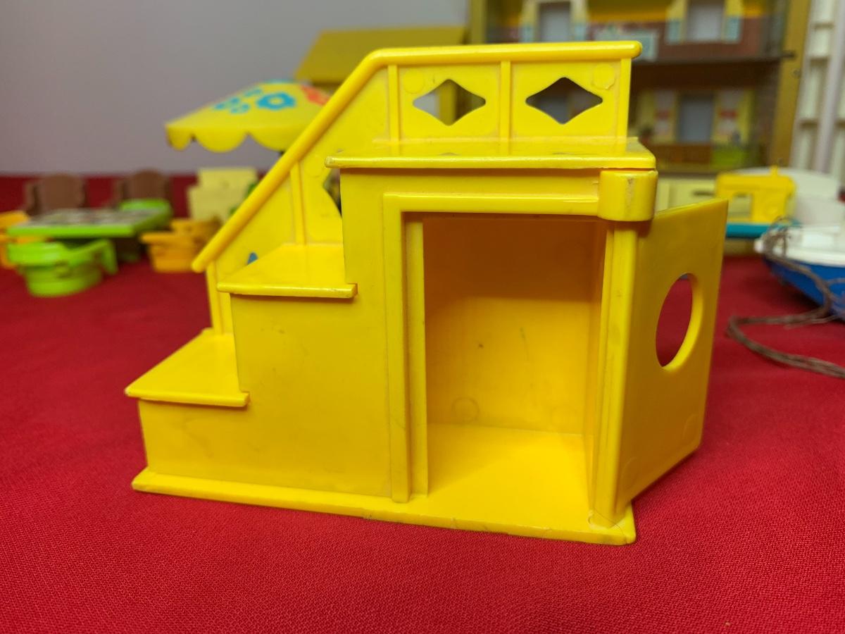 Includes the house 952 with attached single car garage, various family members, furniture and stairs. Garage toys including car, motorcycle and boat Good used condition.