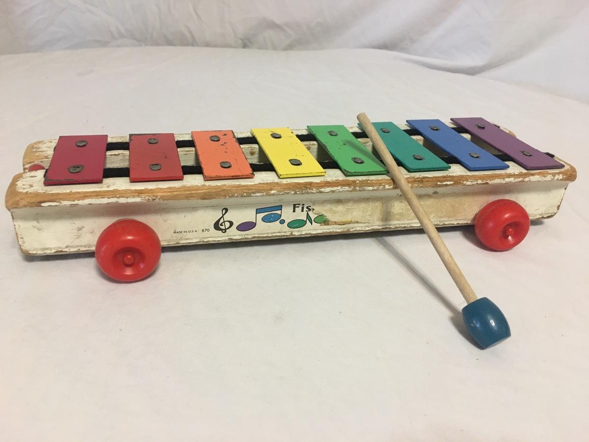 Vintage Fisher Price Pull-a-Tune Xylophone Pull Toy#870, 1964