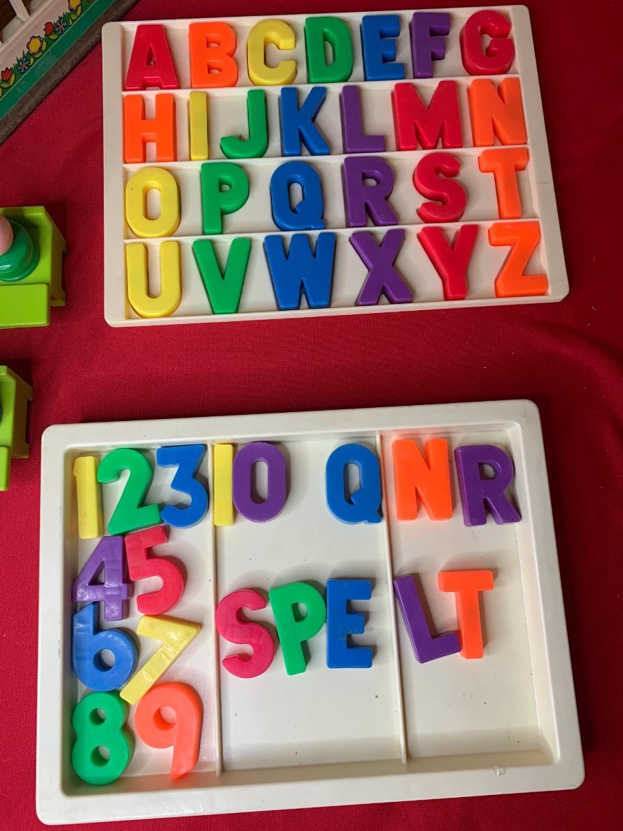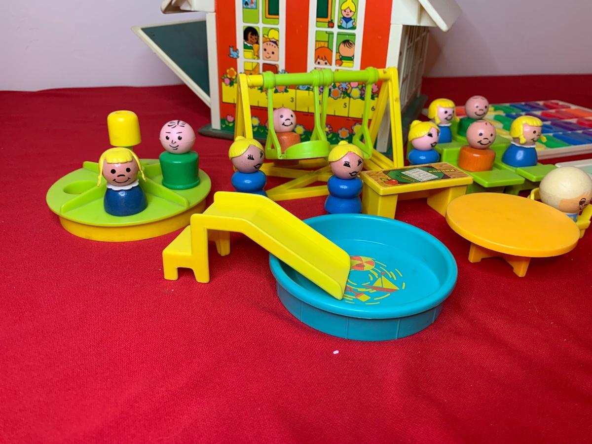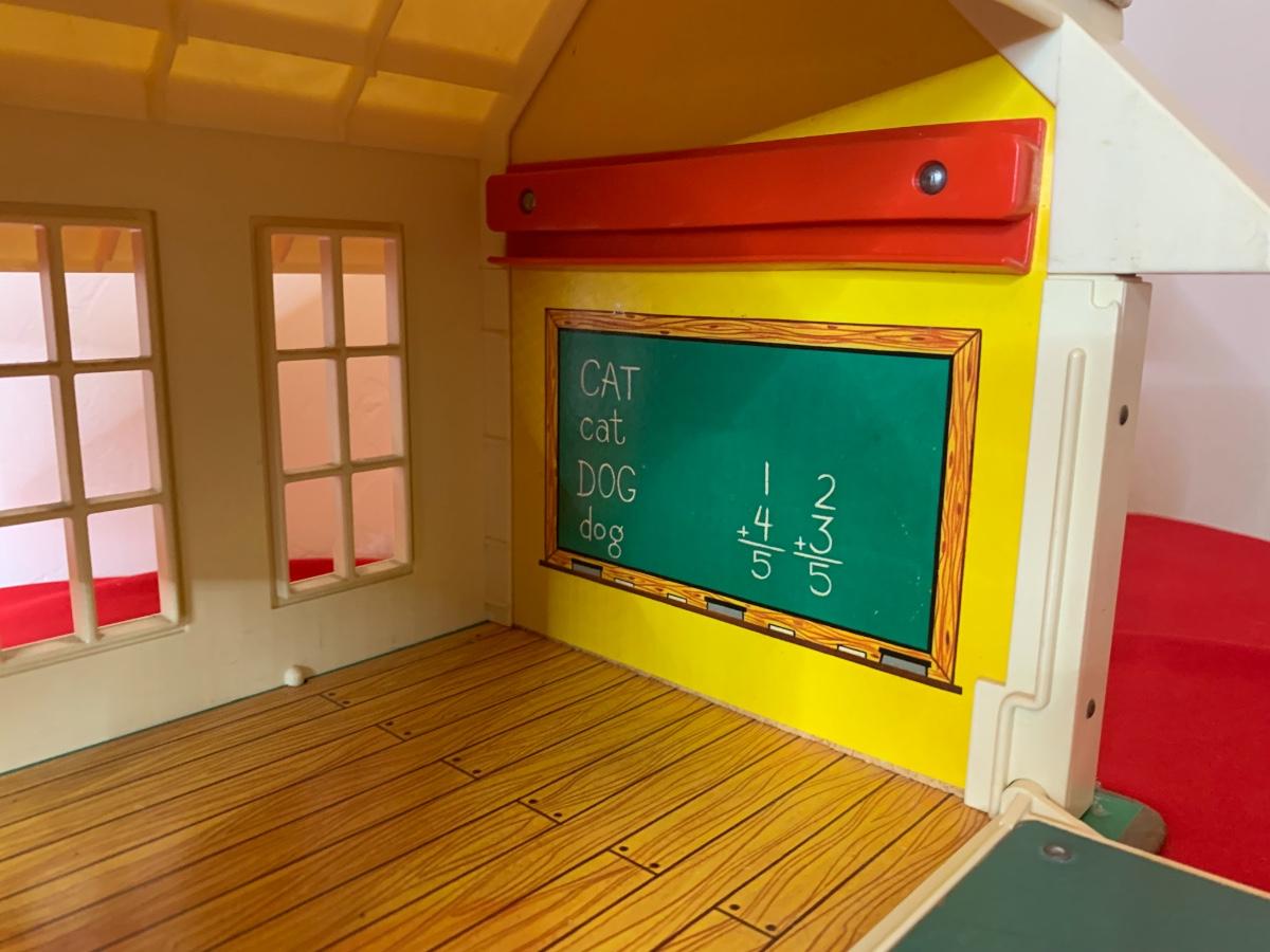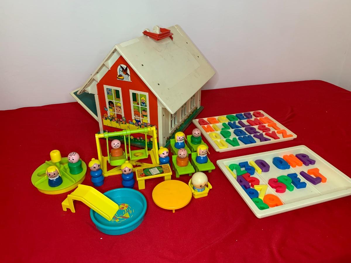 Includes the school, trays of letter and number magnets, people, playground equipment and desks. Good used condition, it IS missing the bell on top.