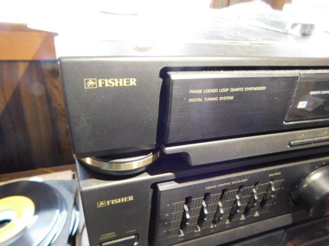 Vintage Fisher Stereo Turntable System with Speakers turn table is missing lid