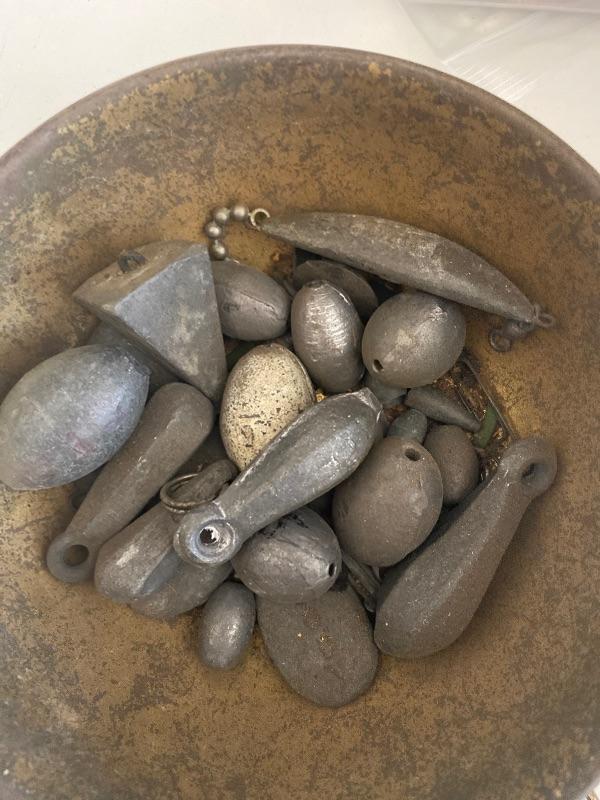 5 fishing lures and 12+ small weights. Used.