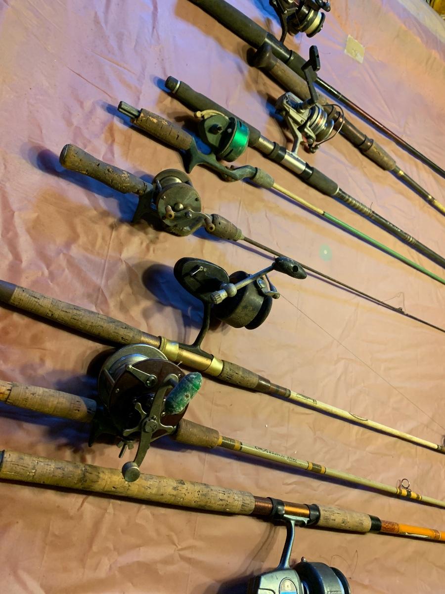 Vintage Fishing Poles Rods and Reels Lot
