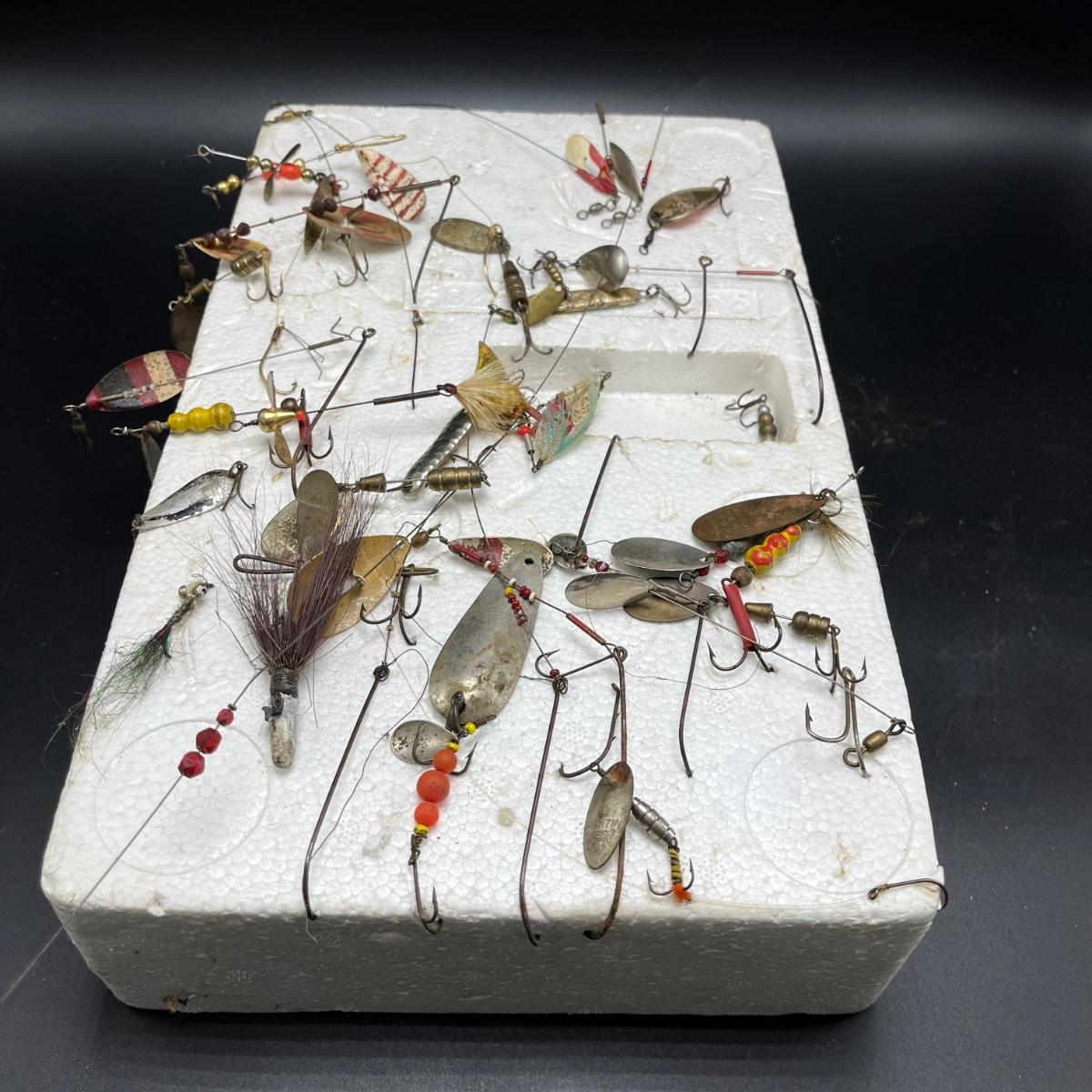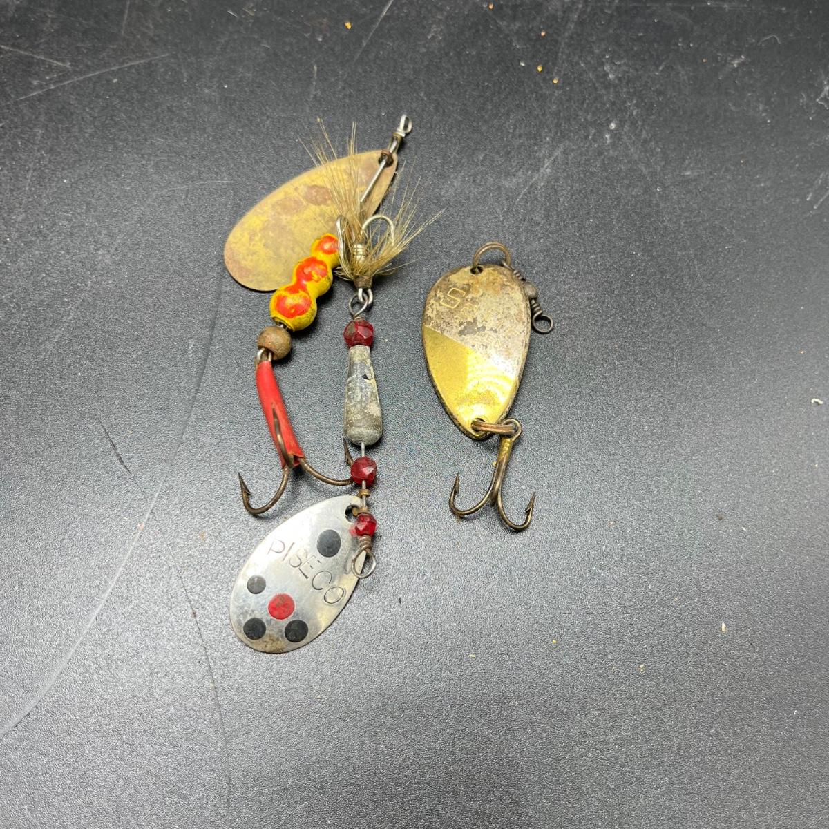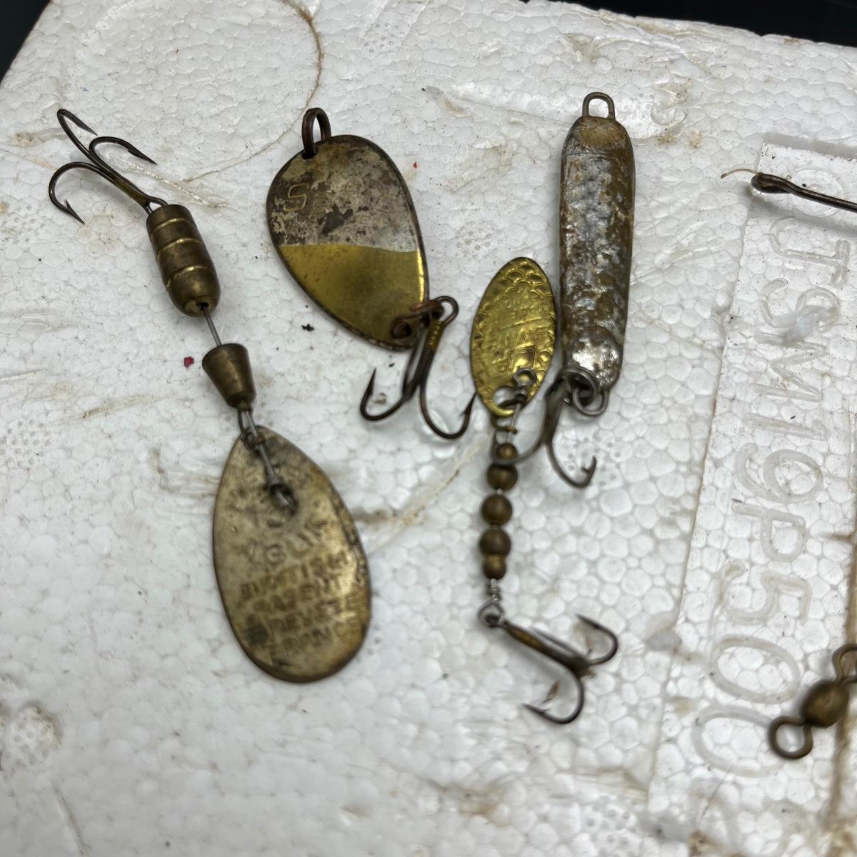 Lot contains a selection of fishing spoons including Mepos, Safir, Martin and more. Longest spoon measures 2” long.