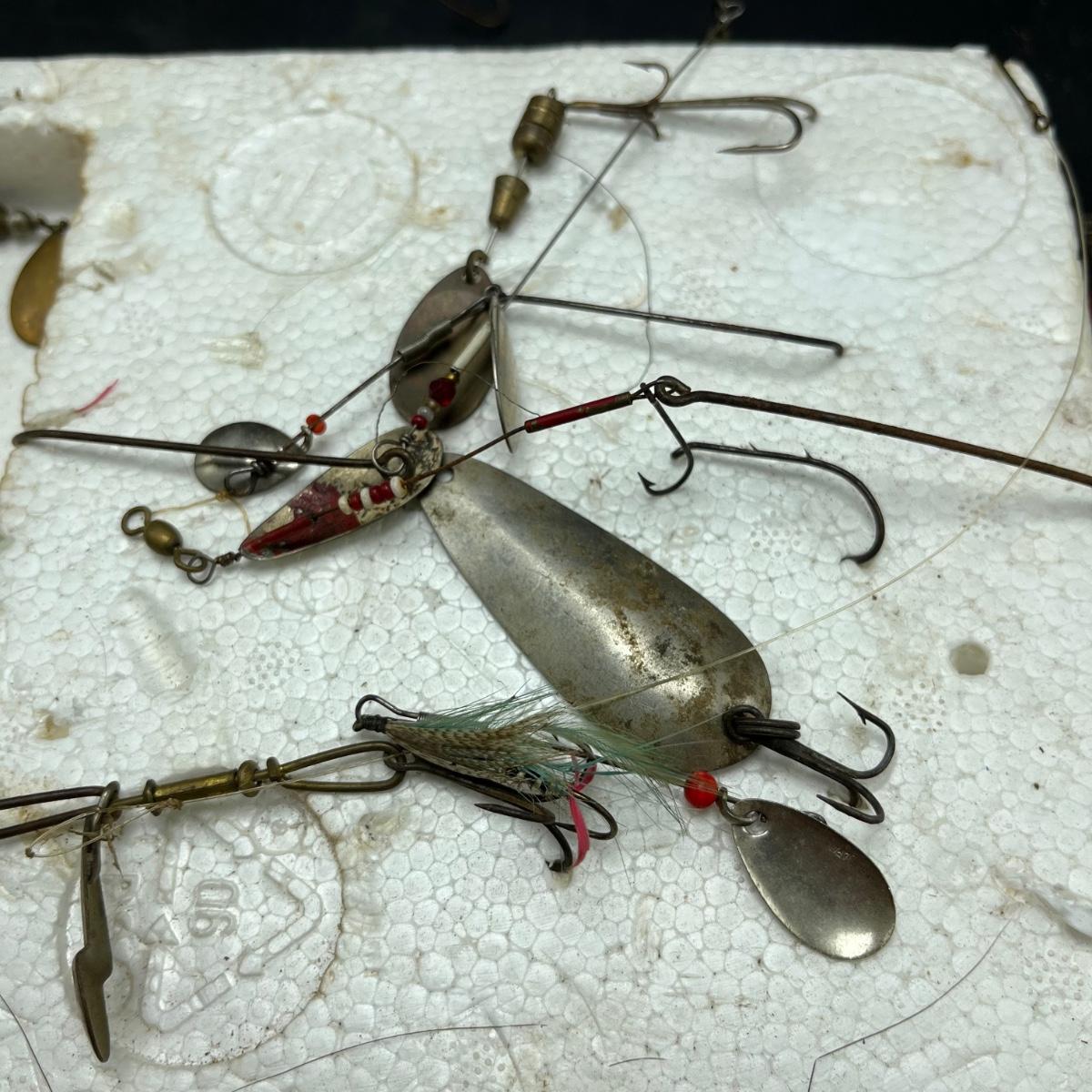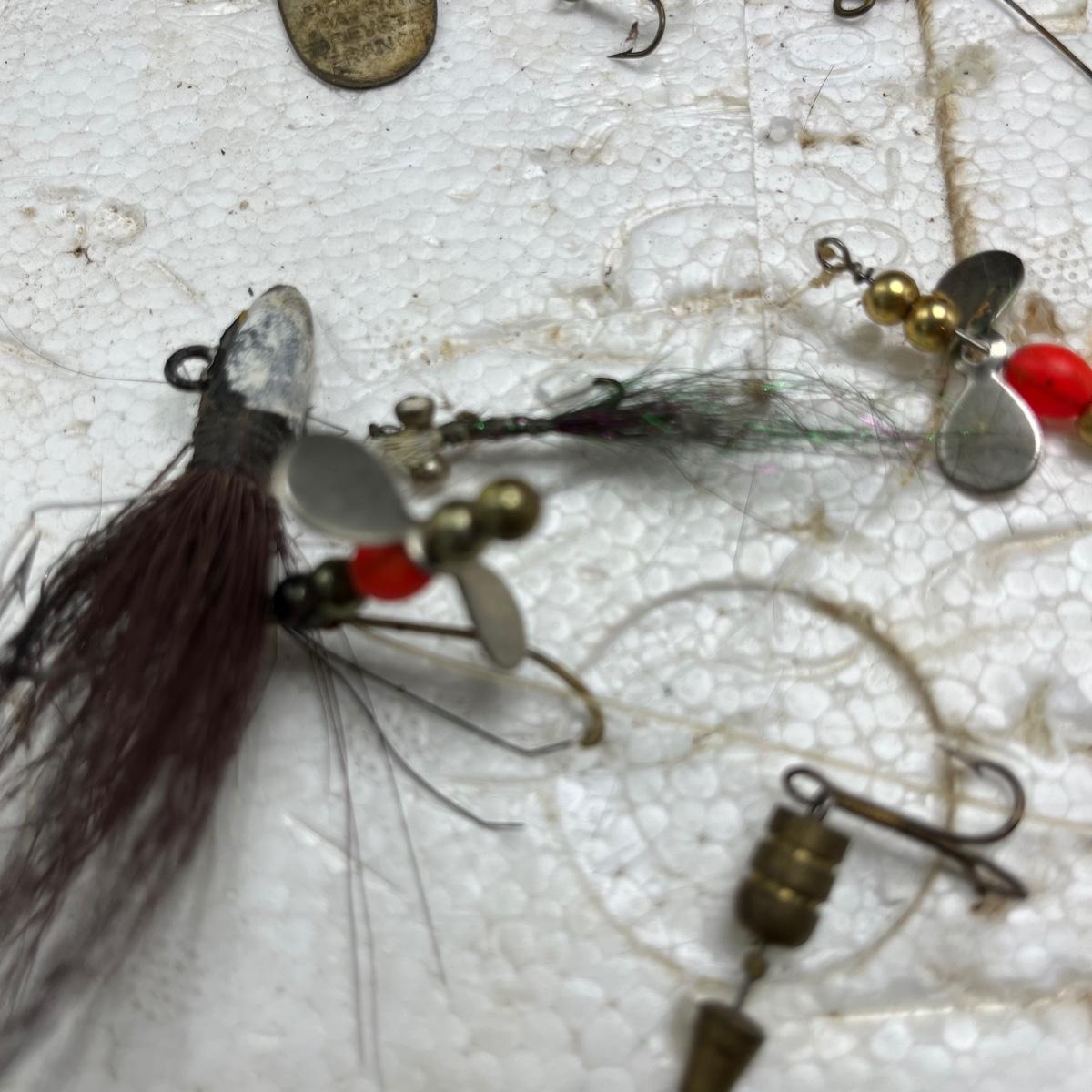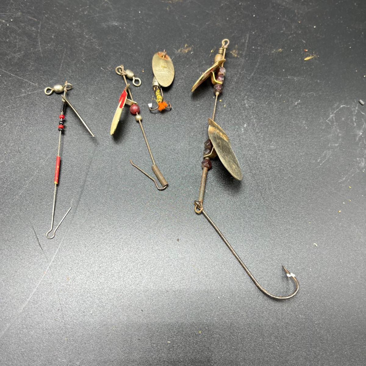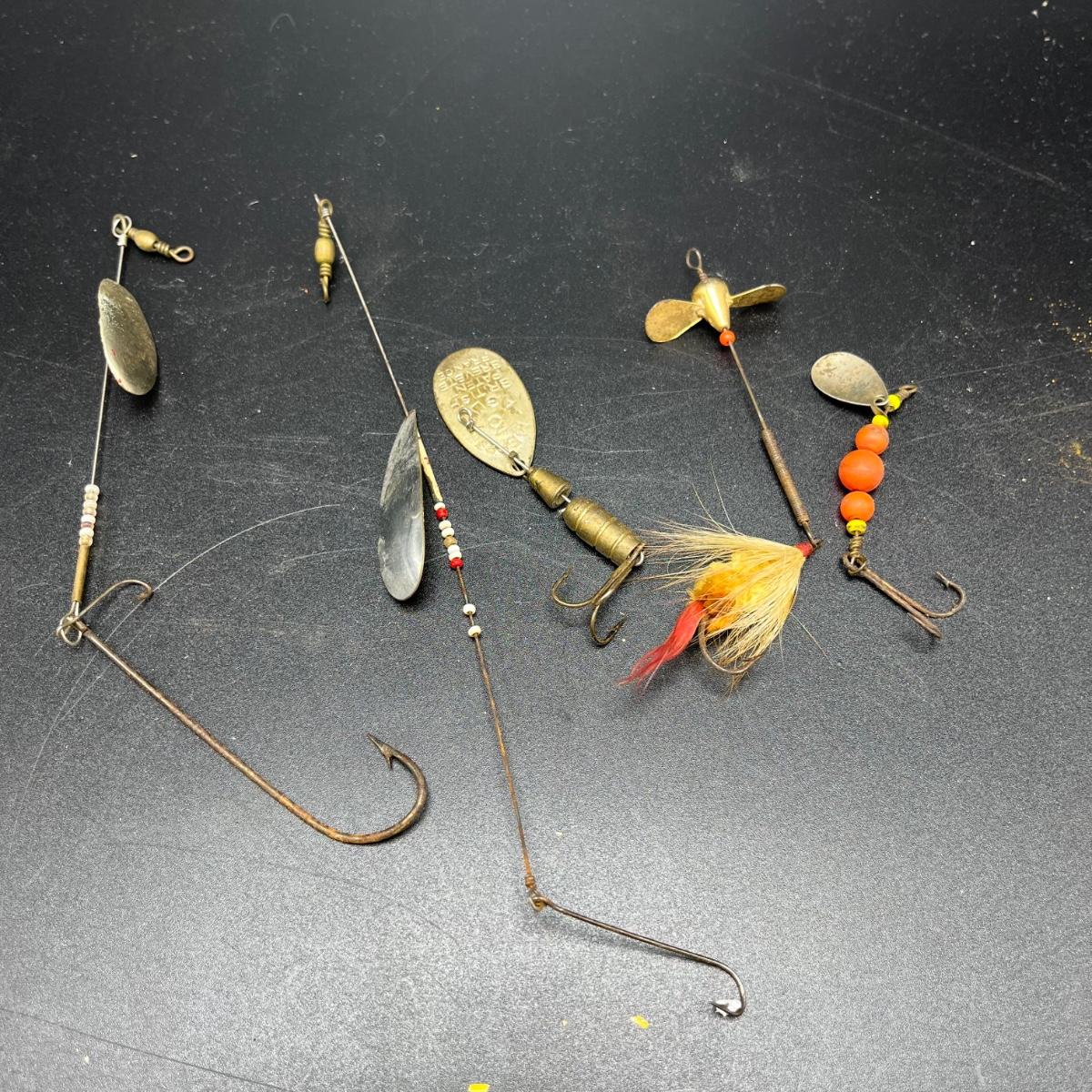 Lot contains a selection of fishing spoons including Mepos, Safir, Martin and more. Longest spoon measures 2” long.