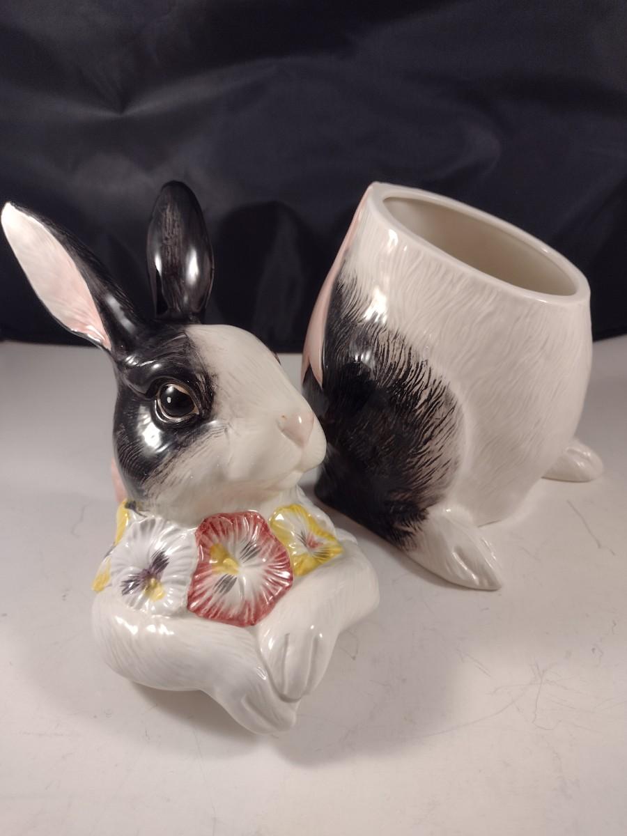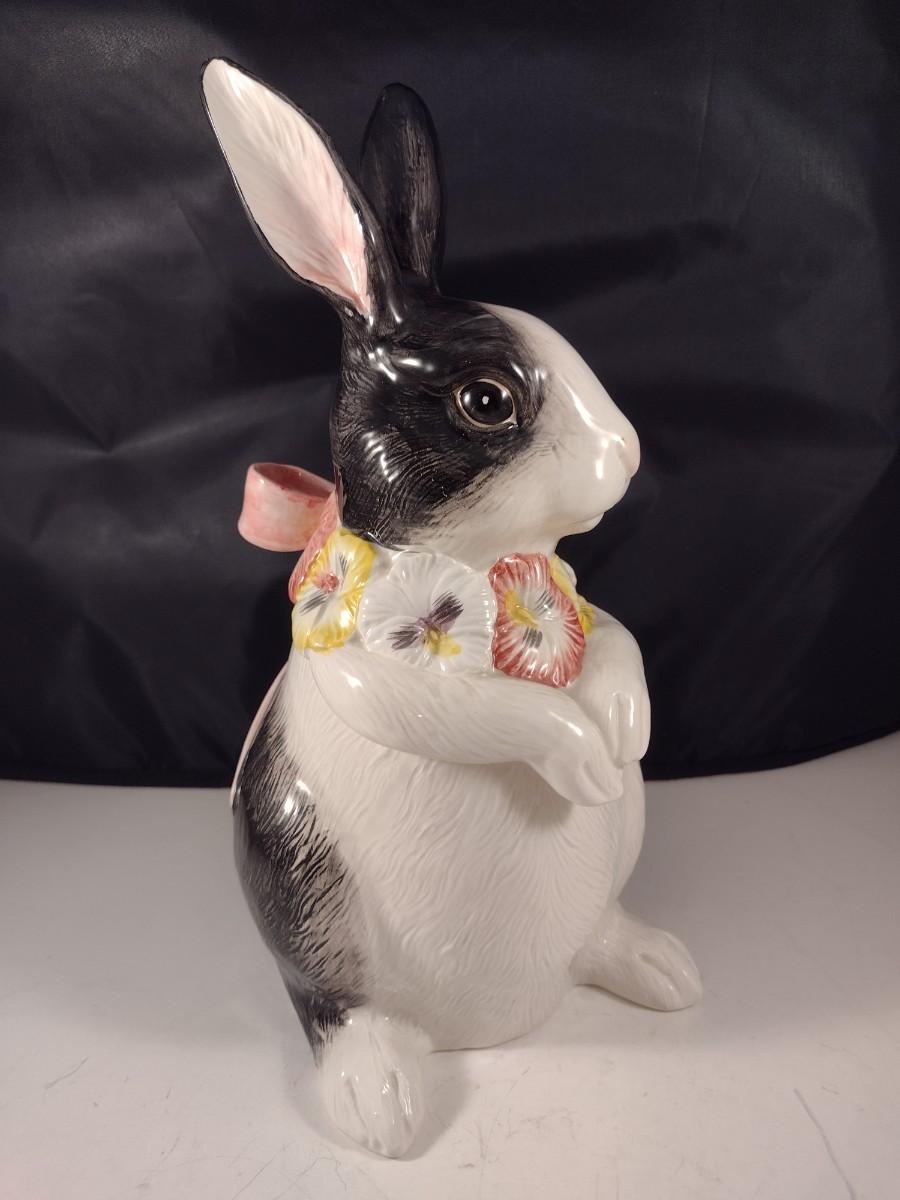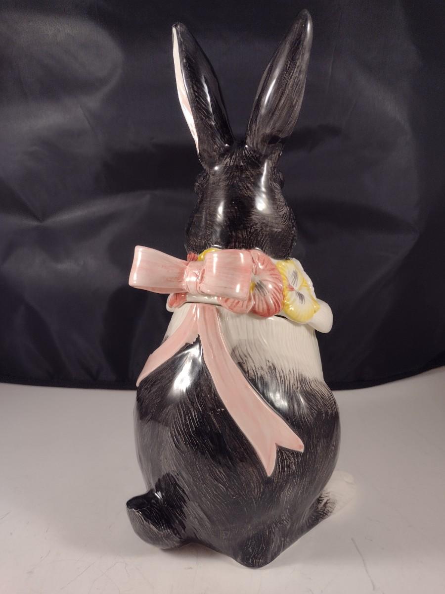Vintage Fitz and Floyd Black and White Rabbit with Pink Bow Cookie Jar
