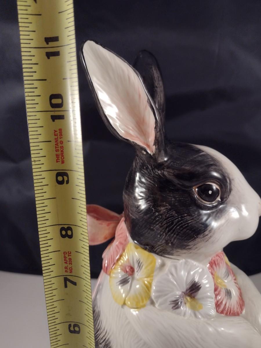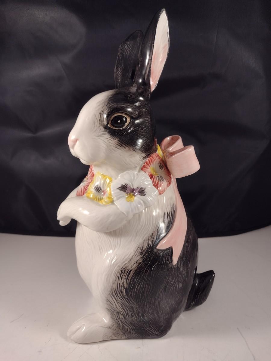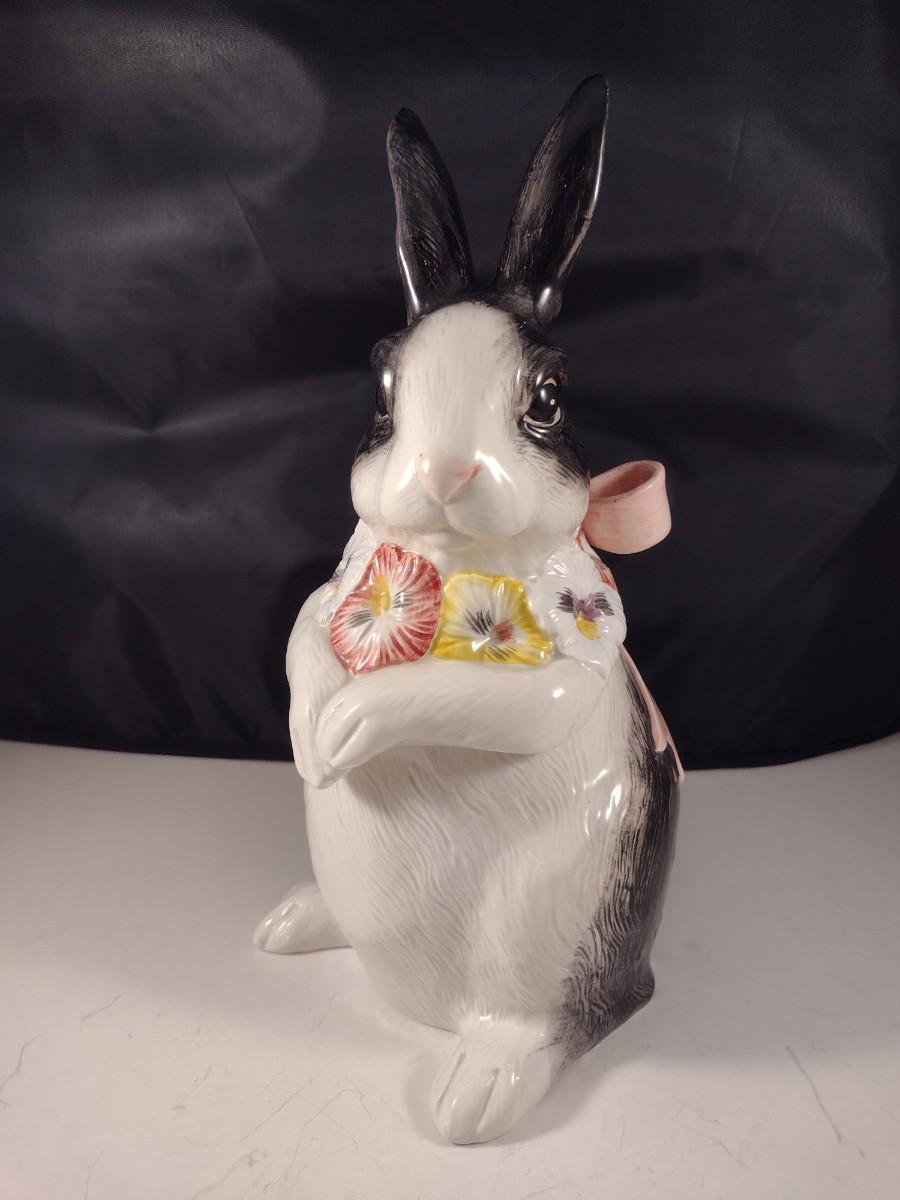 Vintage Fitz and Floyd Black and White Rabbit with Pink Bow Cookie Jar