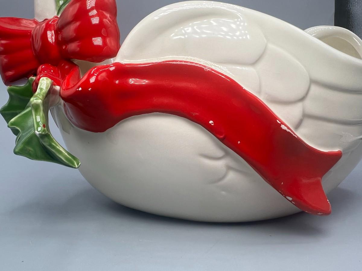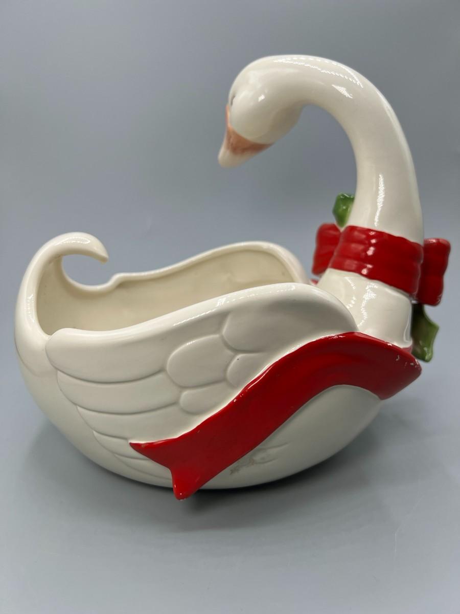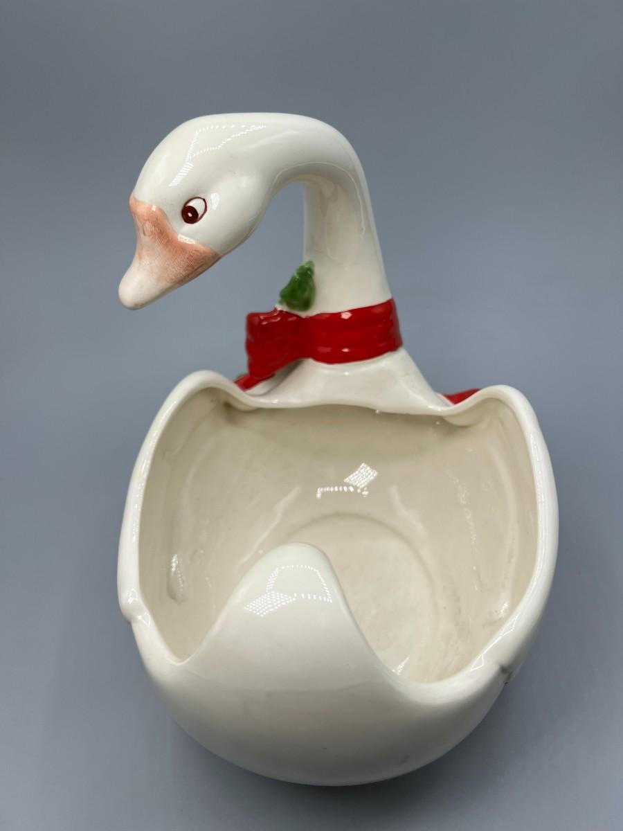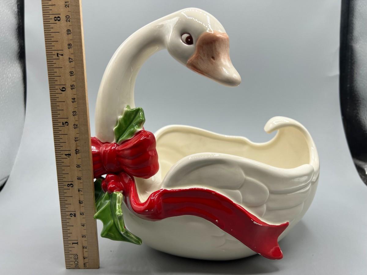 Vintage Fitz and Floyd Christmas Holiday Holly Swan Goose Bowl Decor