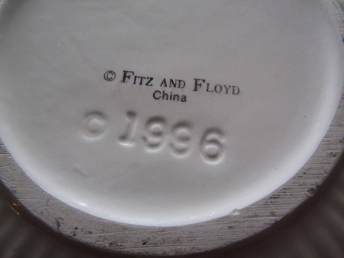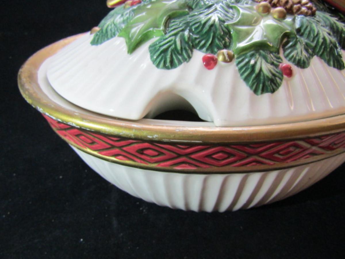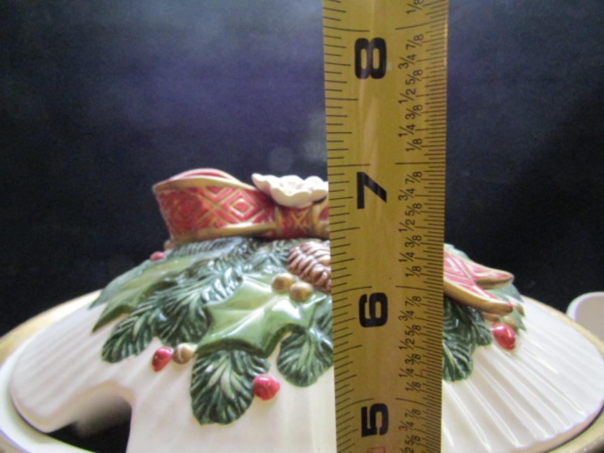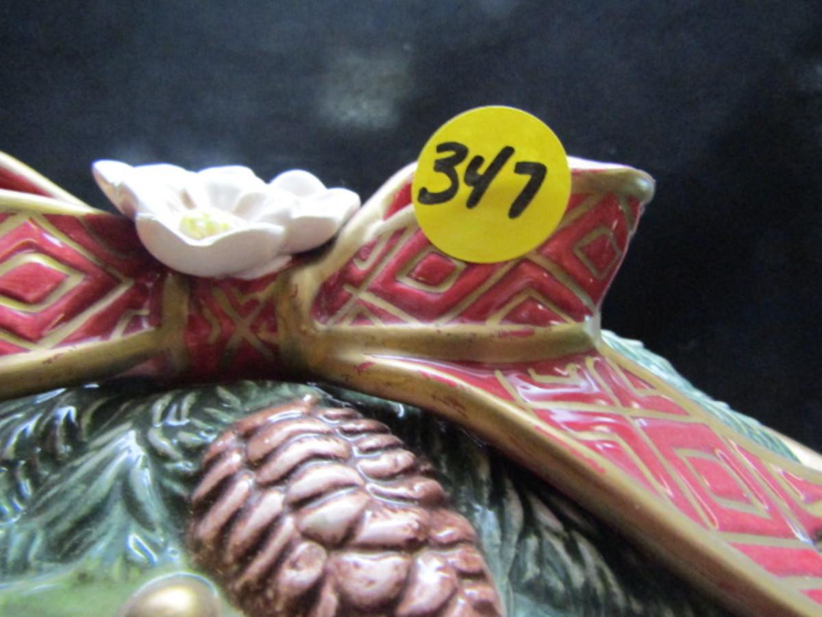 Vintage Fitz and Floyd Painted Ceramic Soup Tureen with Ladle- Greenery and Bow Design (#347)
