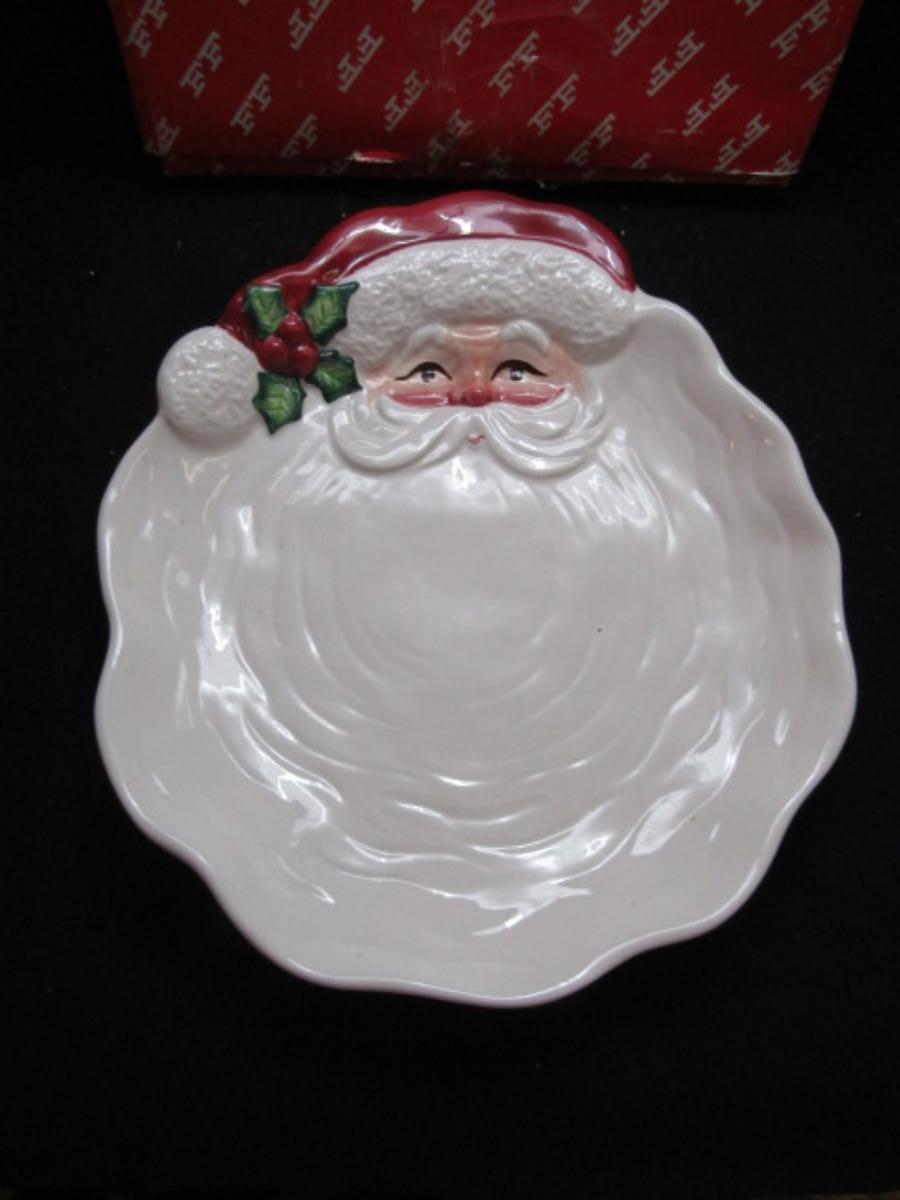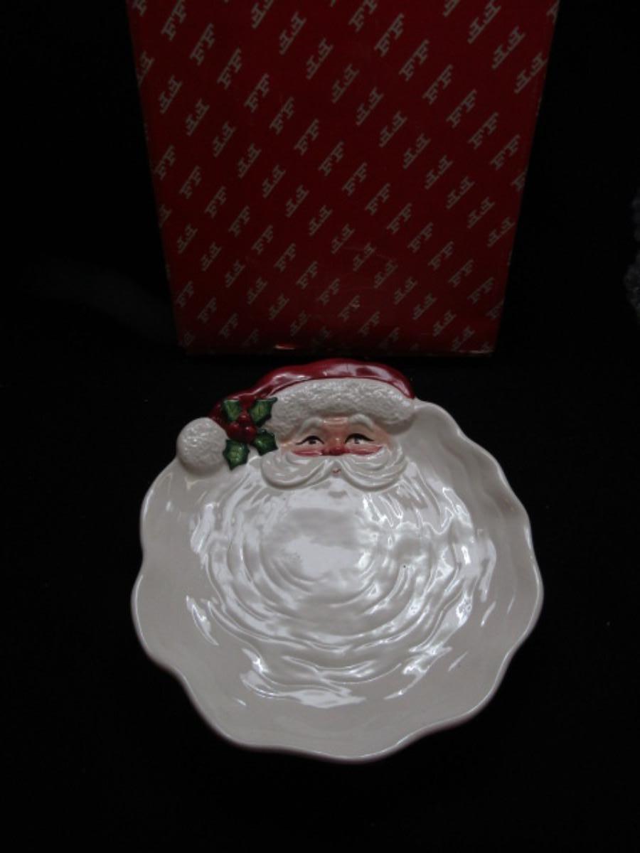 Vintage Fitz and Floyd Painted Ceramic Plate with Box- Santa Design (#348)