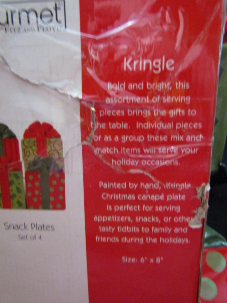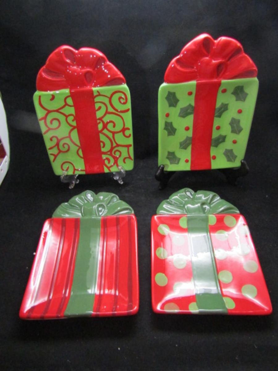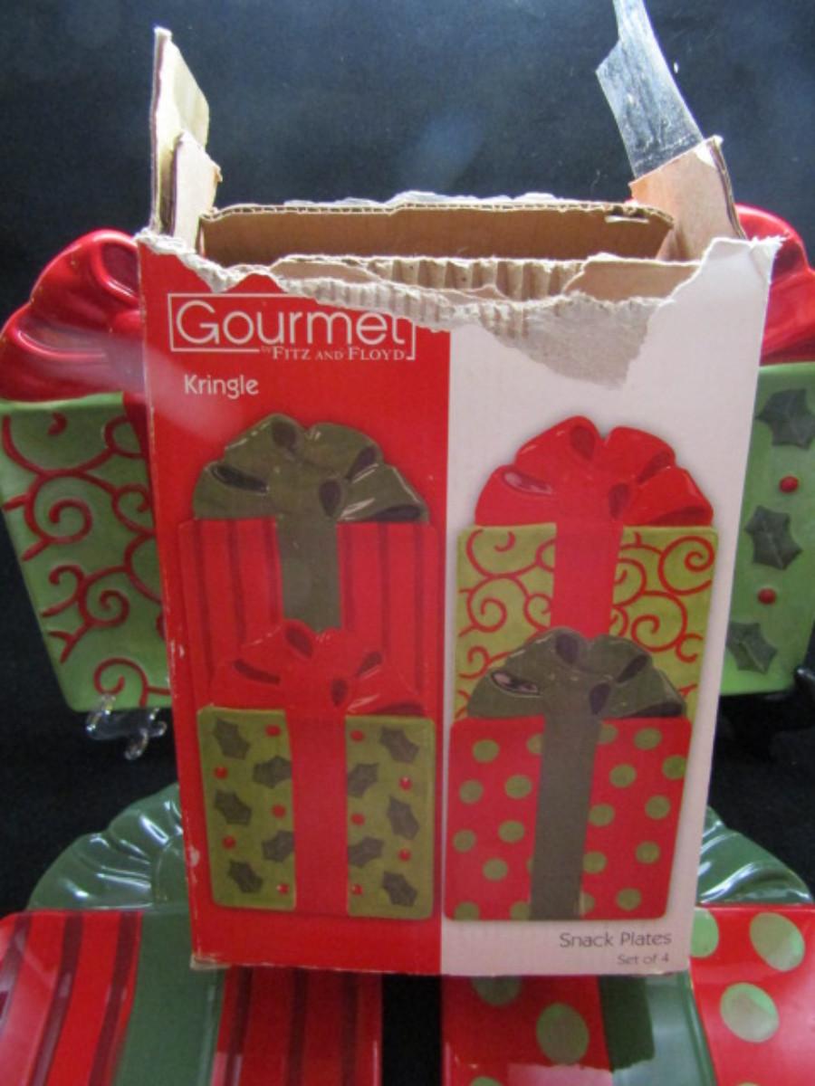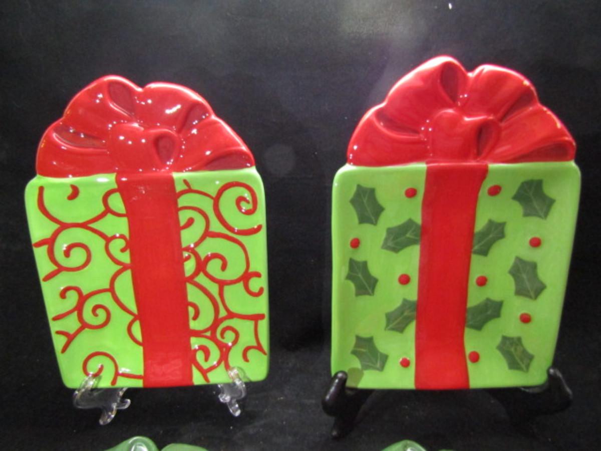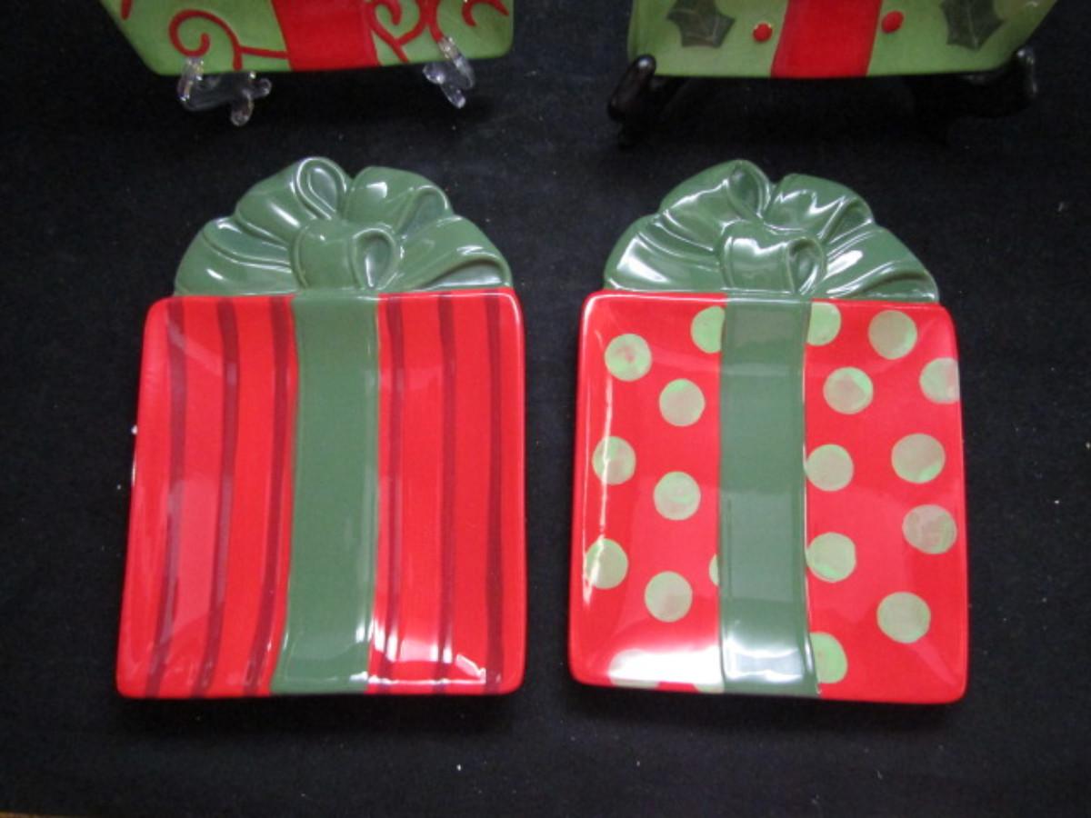 Vintage Fitz and Floyd Painted Ceramic Snack Plates with Box- Holiday Boxes Theme (#353)