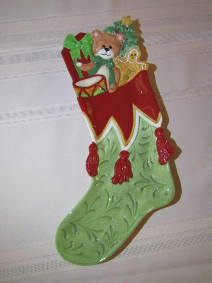 Vintage Fitz and Floyd Painted Ceramic Plate with Box- 'Snack Therapy- Stocking' (#359)