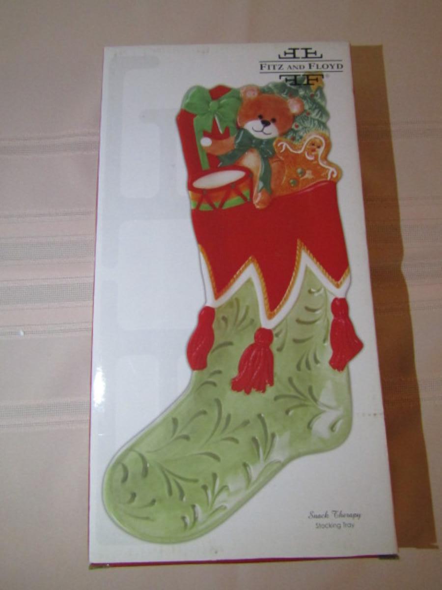Vintage Fitz and Floyd Painted Ceramic Plate with Box- 'Snack Therapy- Stocking' (#359). Please see all pictures- some light chipping.