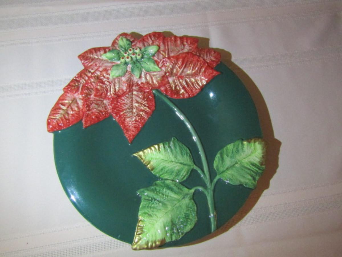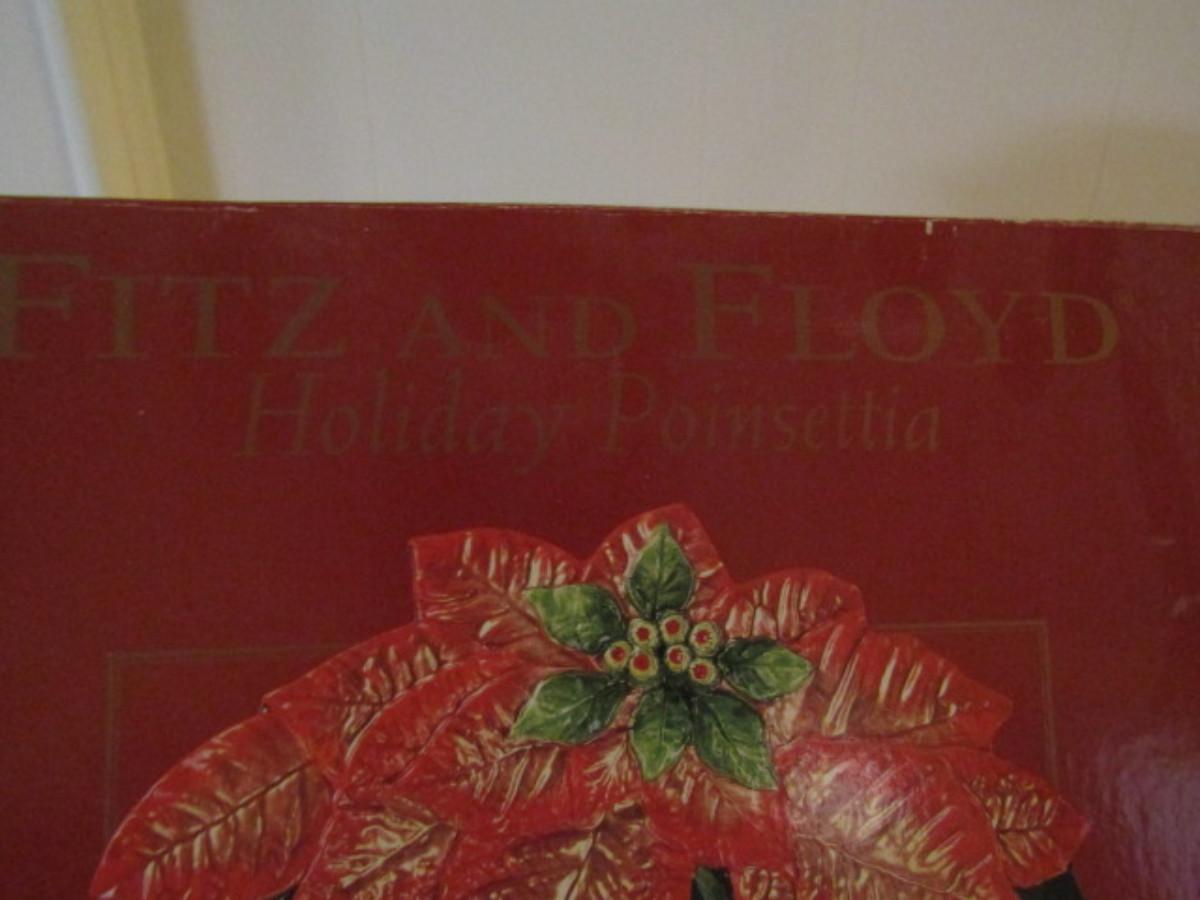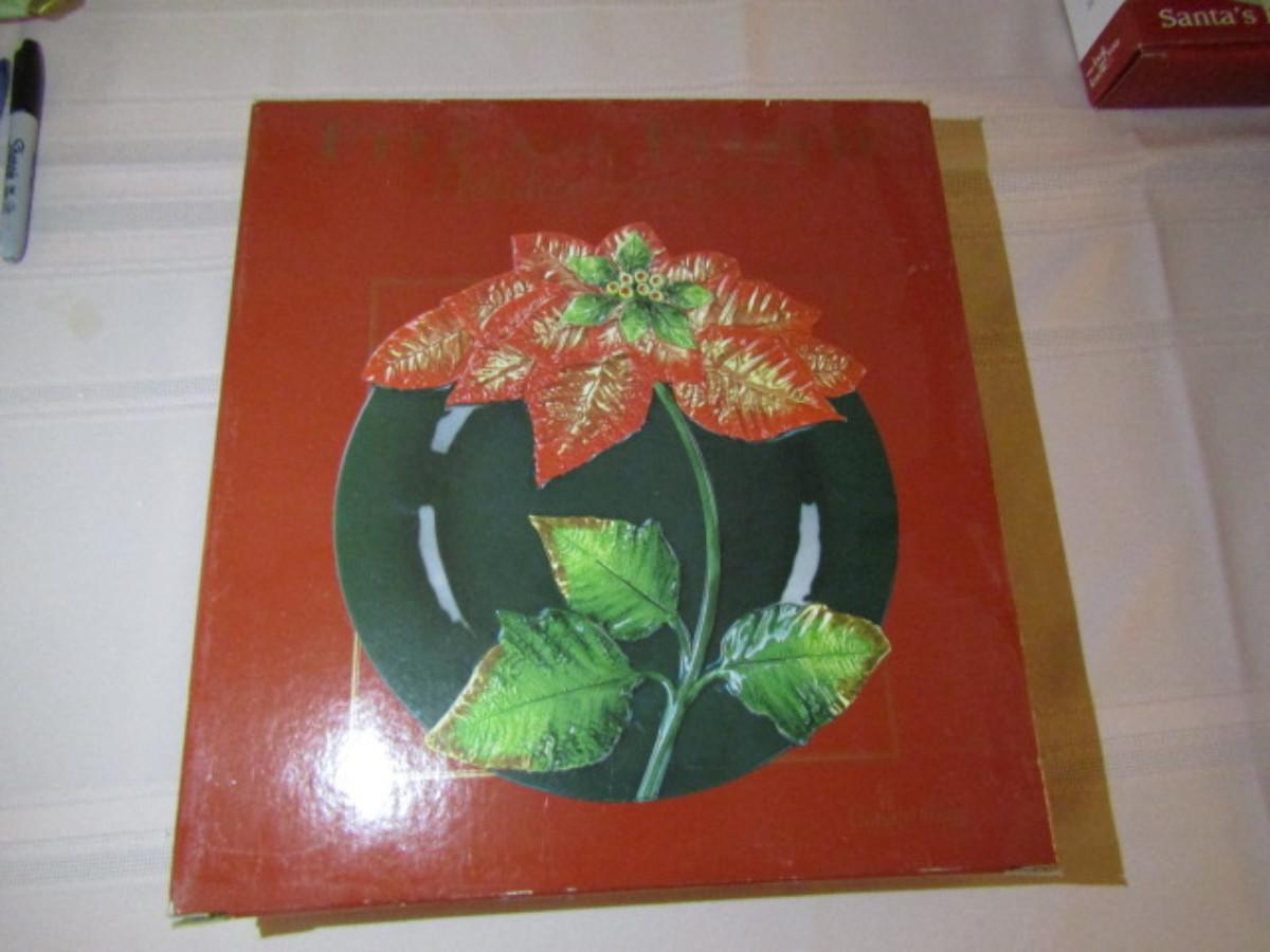 Vintage Fitz and Floyd Painted Ceramic Plate with Box- Poinsettia Design (#361)