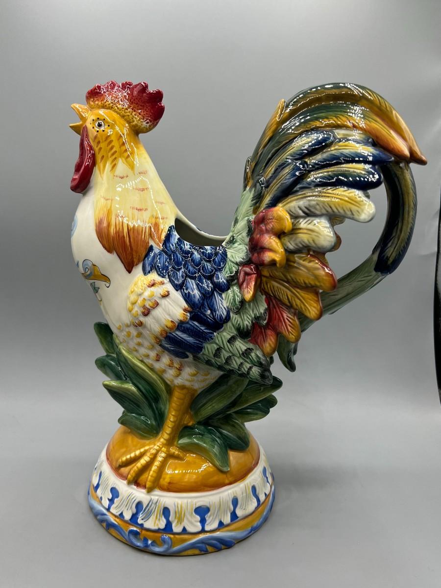 Ceramic Chicken Rooster Vintage Fitz and Floyd Ricamo Series Collectible Kitchenware Pitcher
