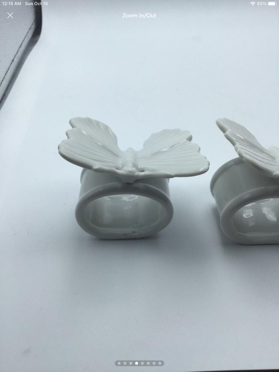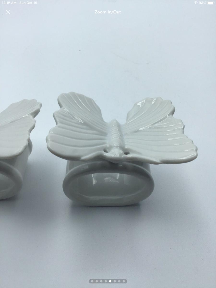 Vintage Fitz and Floyd White Porcelain Butterfly Napkin Rings