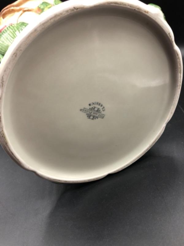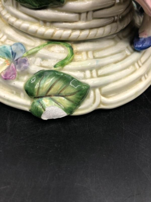 Measures 12” tall . Chip on leaf on bottom edge of base.