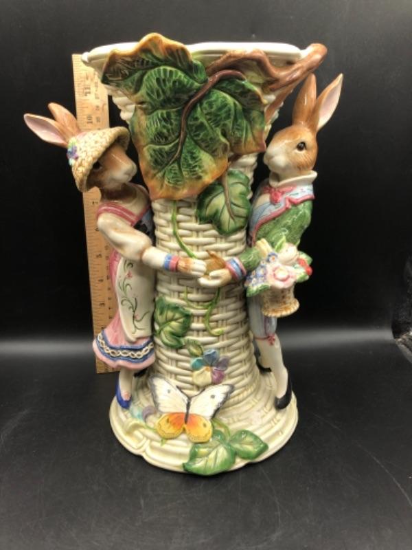 Vintage Fitz & Floyd Classics Old World Vase with rabbit couple centerpiece