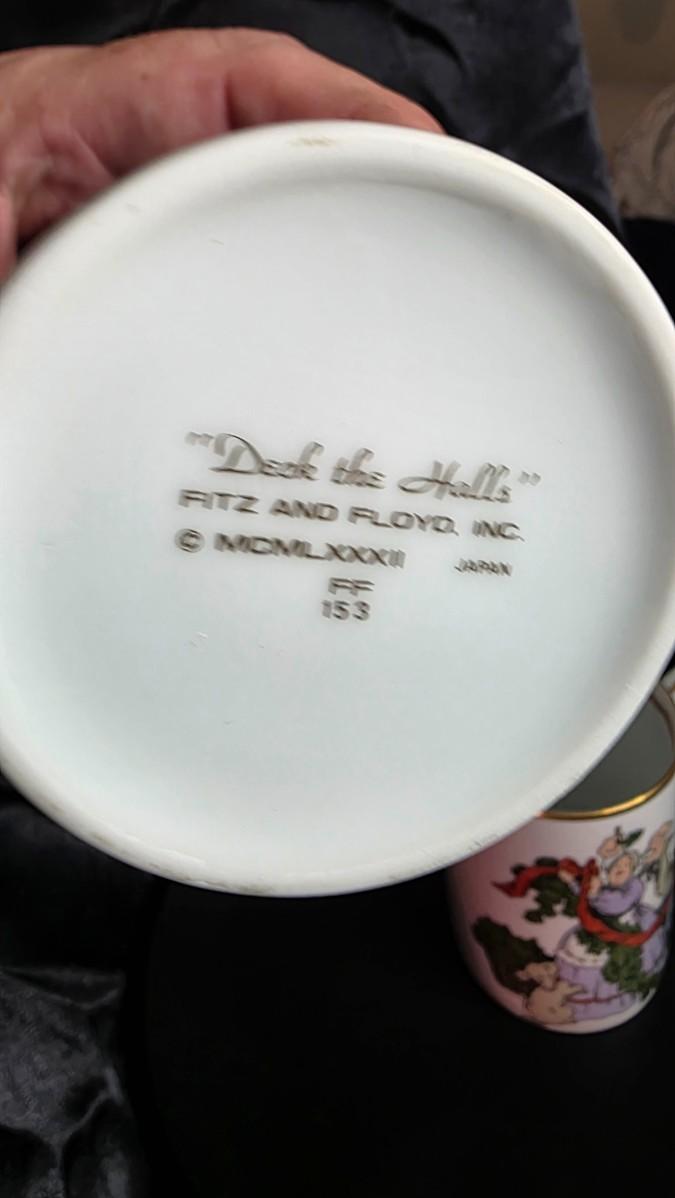 Perfect for collectors of Fitz & Floyd, lovers of vintage porcelain, or anyone longing to bring old-world holiday magic into the home, this matching pair stands not only as drinkware but as heirloom pieces — the kind passed down, rediscovered, and adored. Their stamped base reads: “Deck the Halls – Fitz and Floyd, Inc. © MCMLXXXIII – Japan – FF 153,” affirming their authenticity and place within a beloved seasonal series. Beautiful, nostalgic, and wonderfully kept, they are ready to be cherished again.