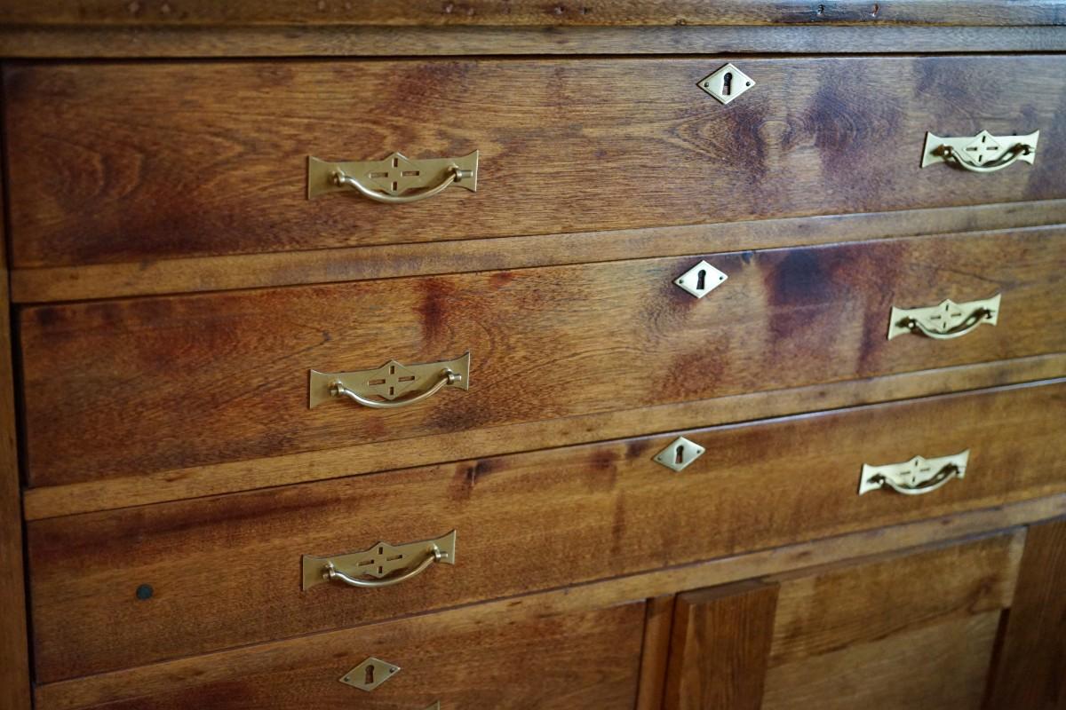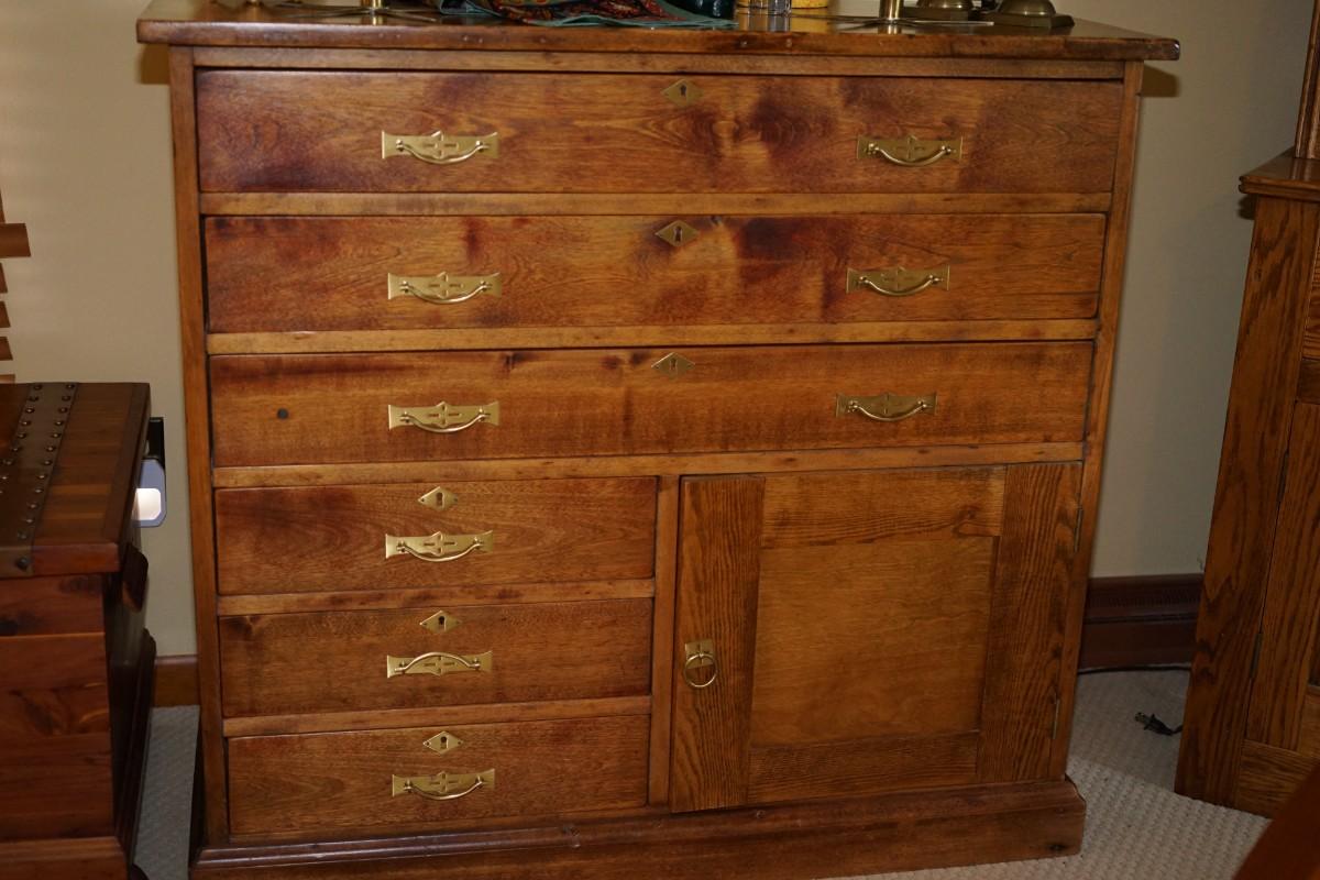 This is a restored older bureau/cabinet. Age 19th century, It has some age marks on the top.