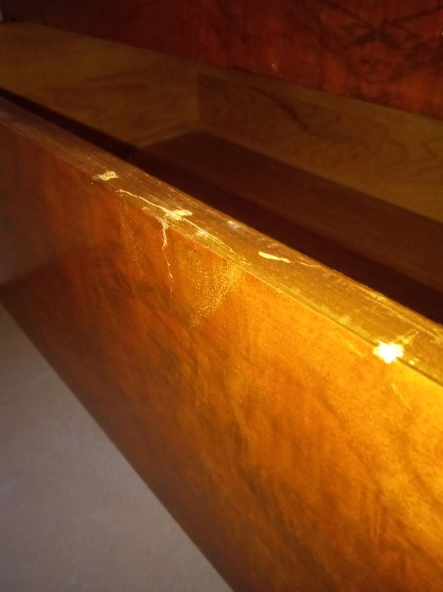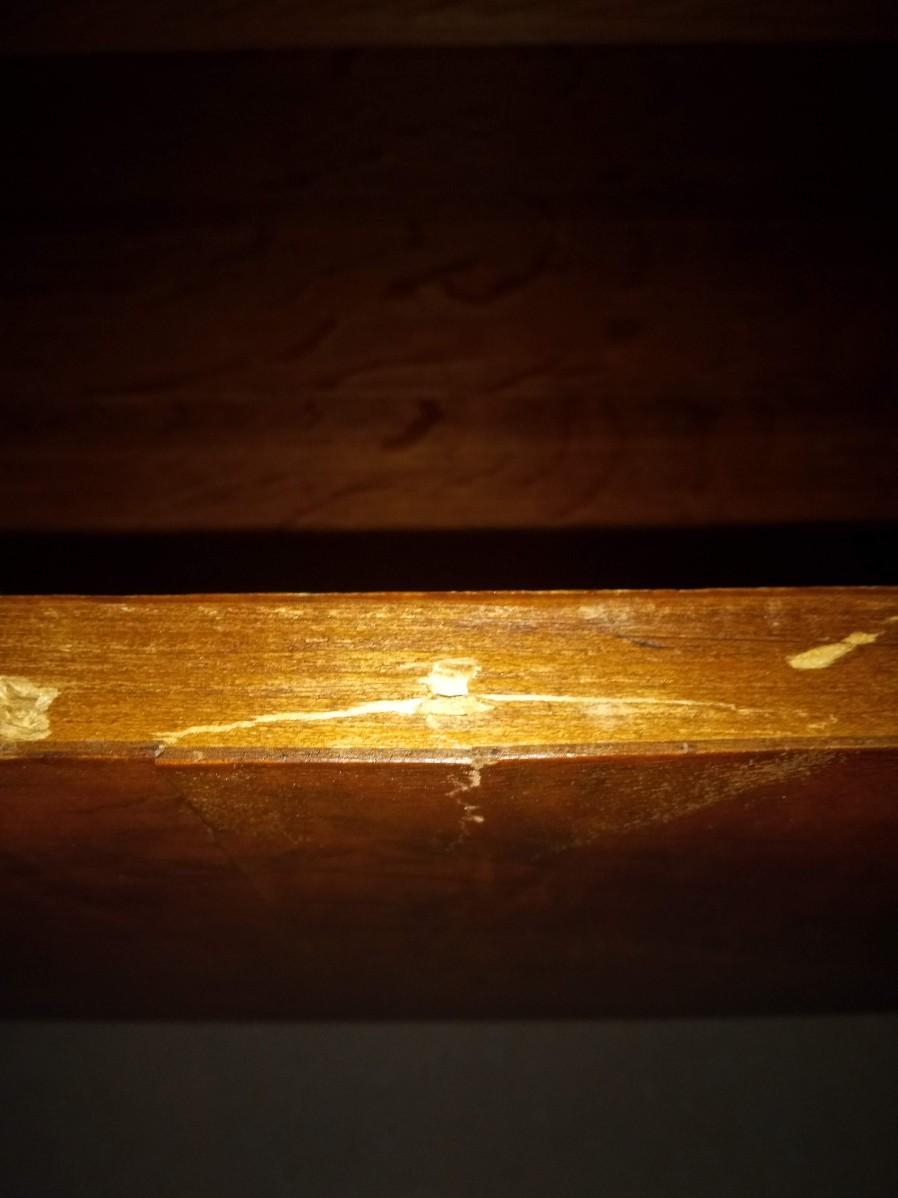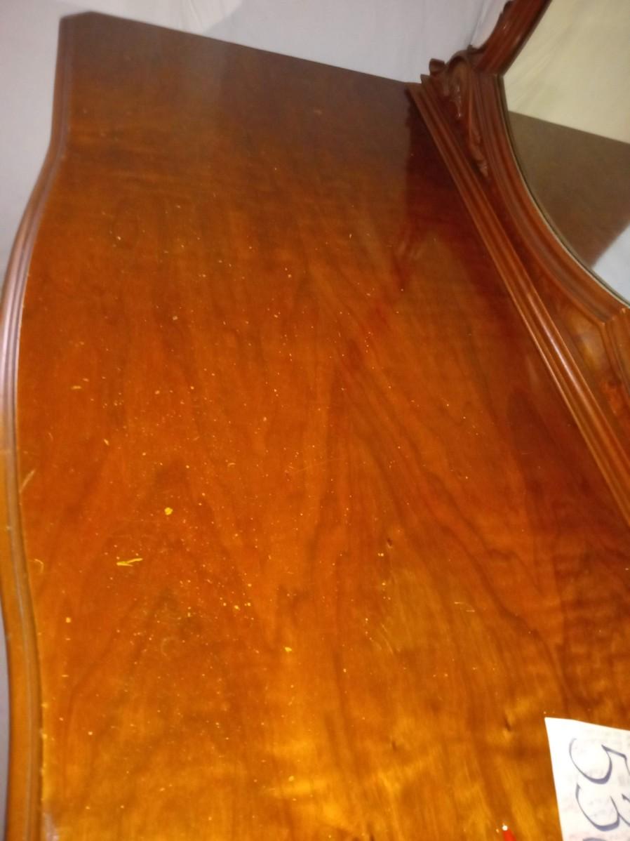 THERE ARE SOME SMALL SCRATCHES ON THE TOP AND THE TOP OF 1 DRAWER IS STARTING TO SPLIT (SEE PICS)