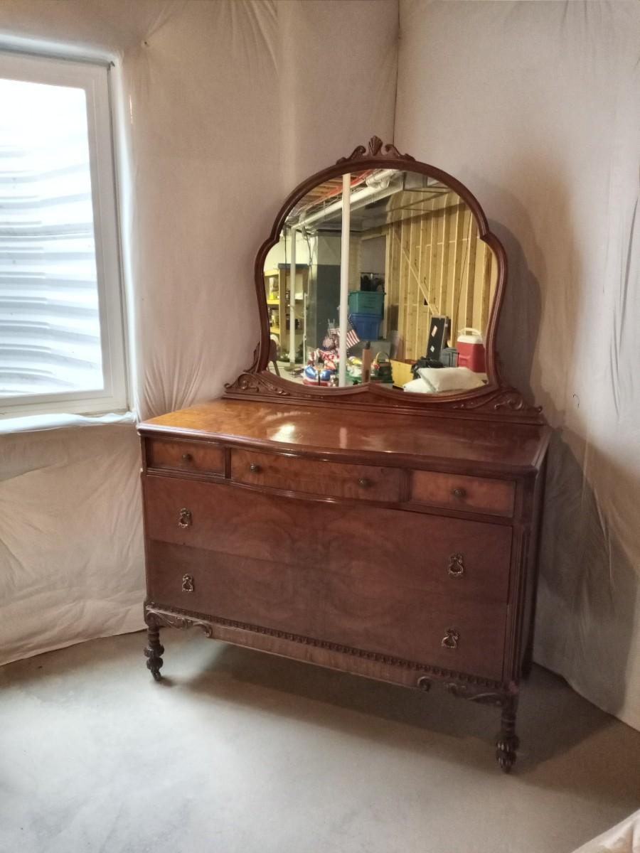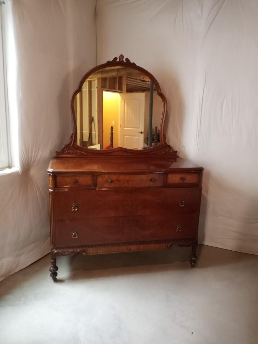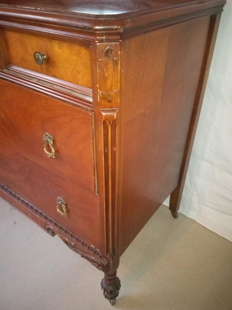 THERE ARE SOME SMALL SCRATCHES ON THE TOP AND THE TOP OF 1 DRAWER IS STARTING TO SPLIT (SEE PICS)
