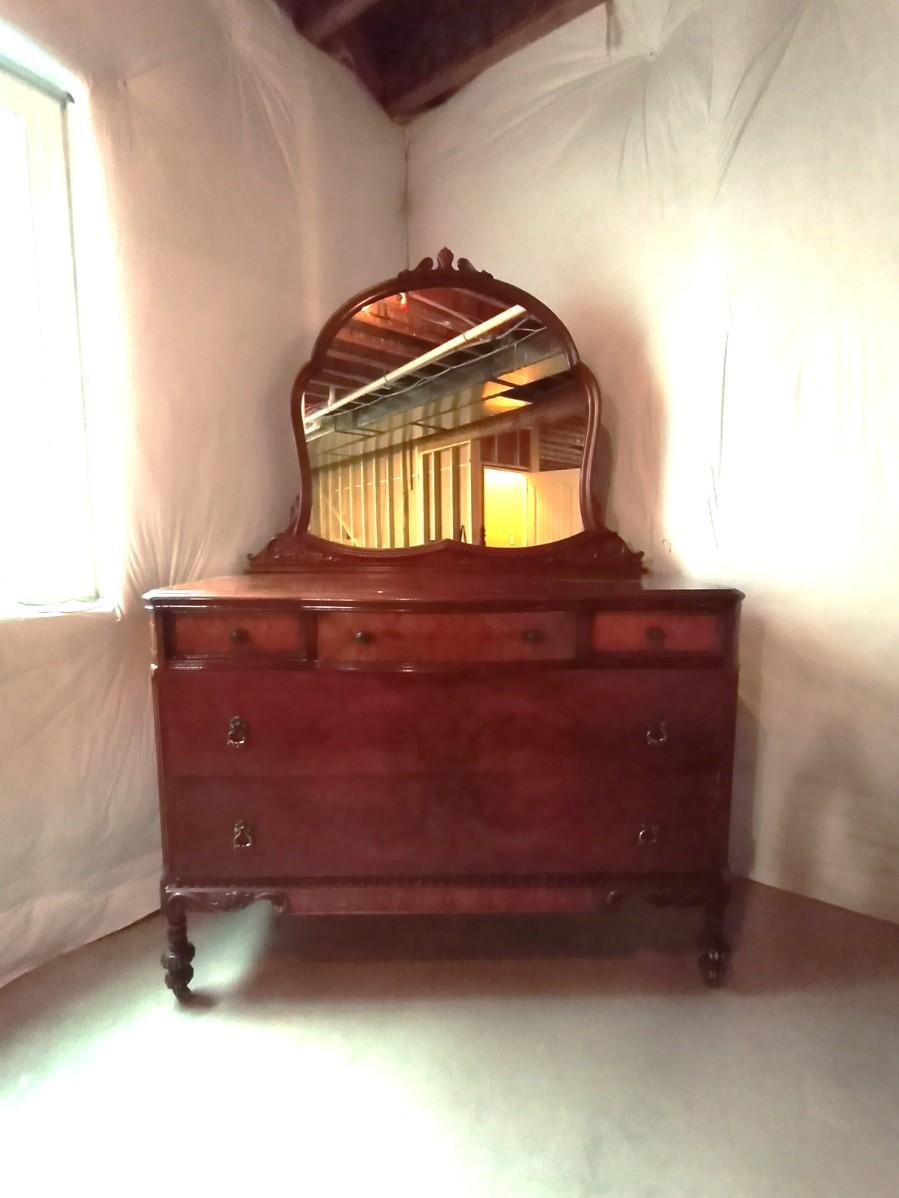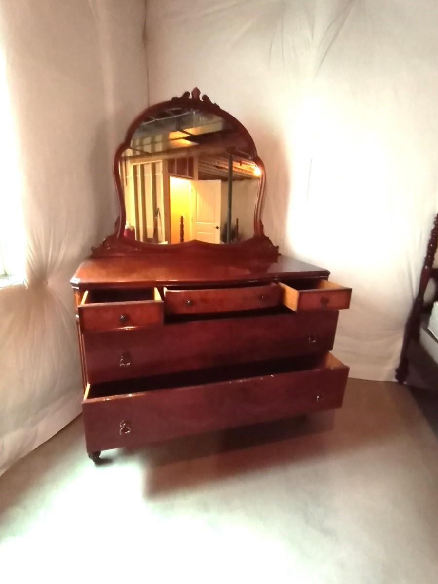 BEAUTIFUL FIVE-DRAWER CHEST OF DRAWER WITH MIRROR 49X22X37 MIRROR 47X36 ON ORIGINAL CASTORS