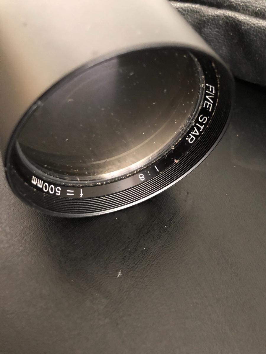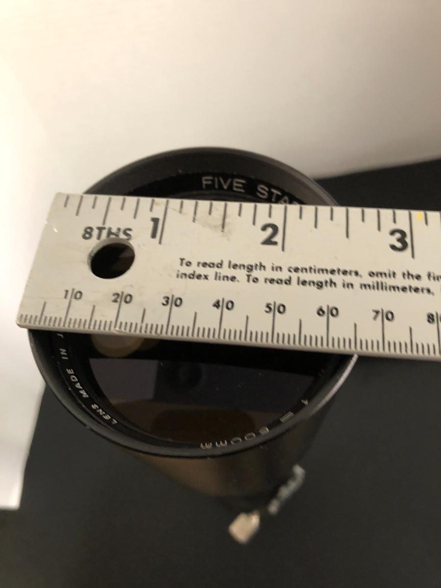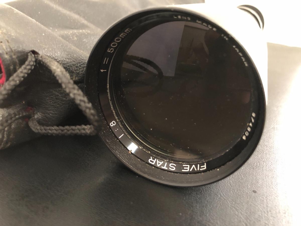 All items are sold as is, as found in the estate. Please see all photos for content, measurements and condition. Five Star 874806, Lens made in Japan, 1:8. F=500mm.
