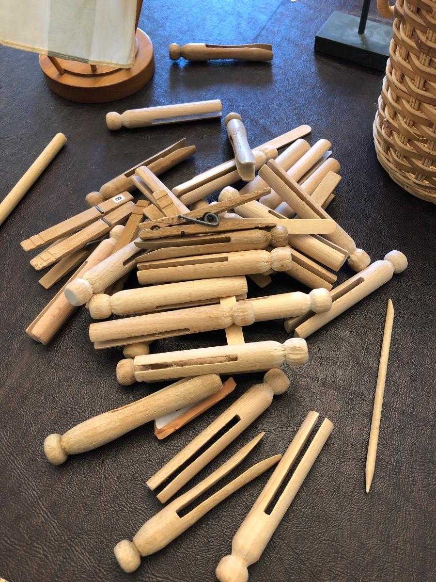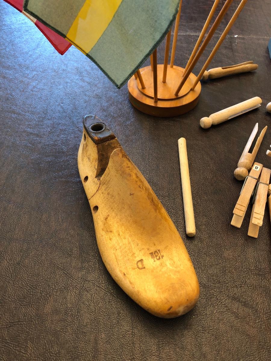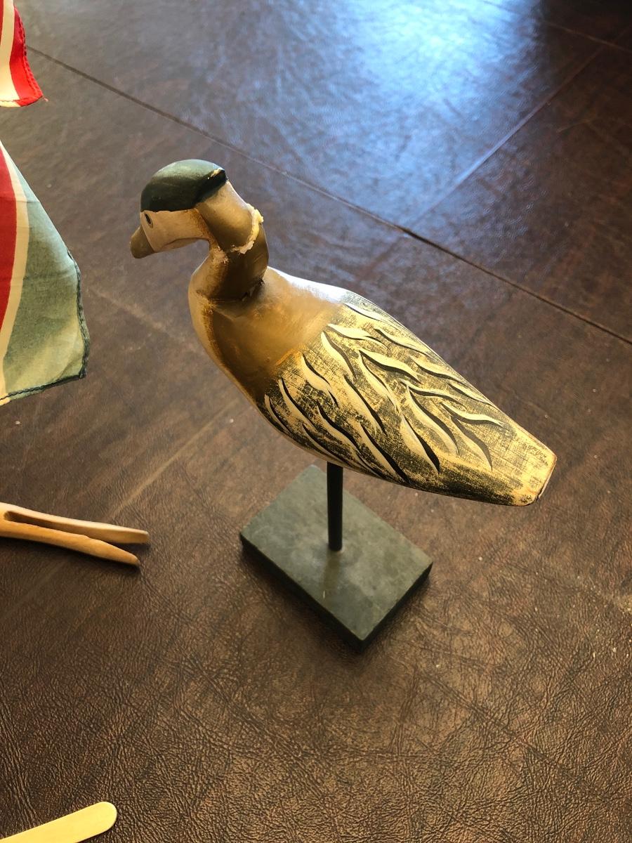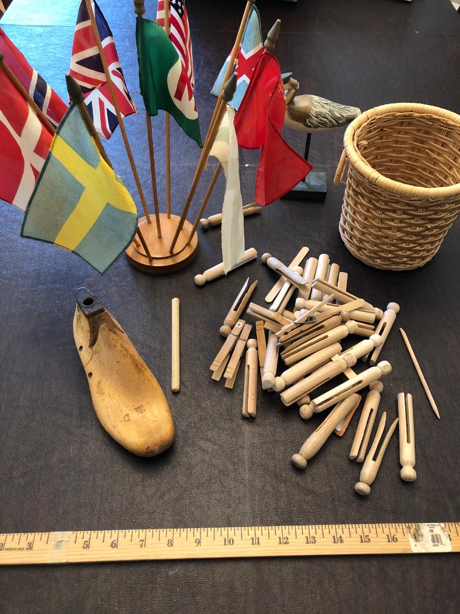 Neat lot of vintage and wooden items. Wooden bird as found.