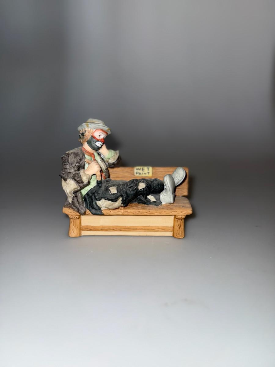 Vintage Flambro Emmett Kelly Jr. Collection 5” Hobo Clown on Park Bench Figurine